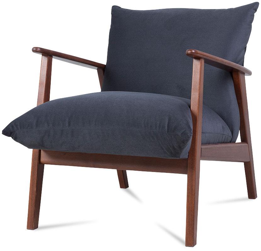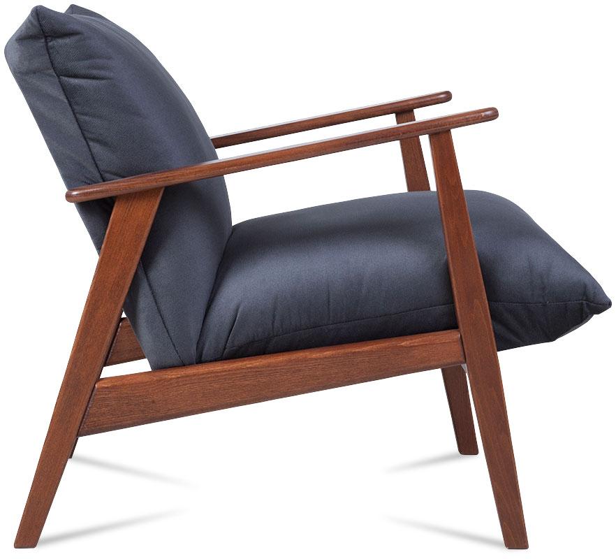 Fotel wypoczynkowy Kris wykonany z tkaniny Kronos w kolorze grafitowym. Nowoczesny fotel z drewnianym stelażem nawiązującym do foteli w stylu retro. Niezwykle wygodny model posiada w siedzisku sprężyny faliste. Dostępny w 3 kolorach żółtym, grafitowym i zielonym. Fotel posiada drewniane, bukowe nogi. Wykonany z tkaniny Kronos.