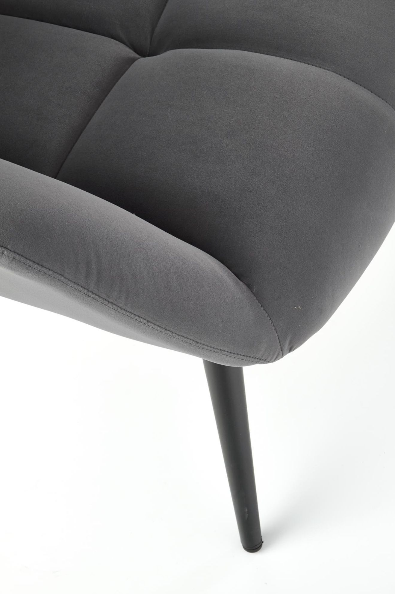 Nogi fotela zostały wykonane z trwałej stali malowanej proszkowo w kolorze czarnym. Kontrast między tapicerką a czarnymi nogami nadaje meblowi nowoczesny charakter i elegancję. Stalowa konstrukcja zapewnia stabilność i trwałość fotela, co sprawia, że będzie on służył przez wiele lat.