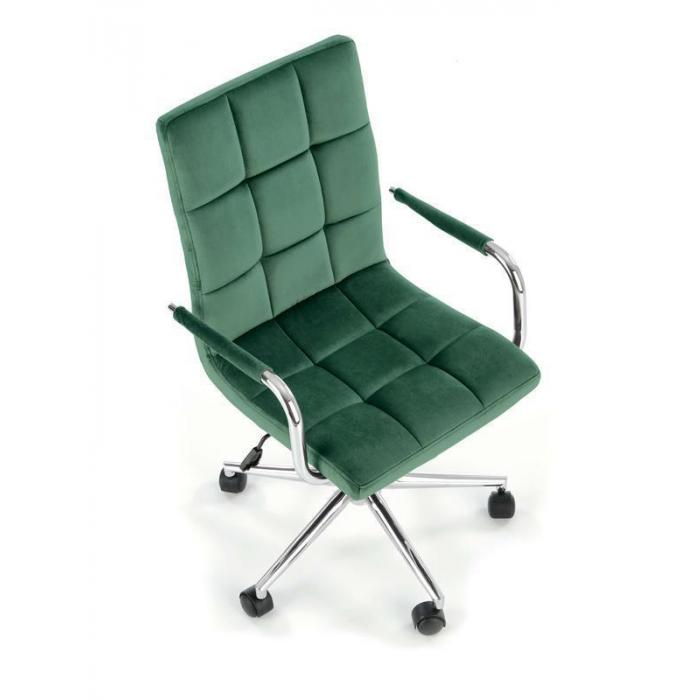 Fotel młodzieżowy Asher 4 to stylowy i funkcjonalny mebel, który doskonale wpasuje się w nowoczesne wnętrza. Jego wymiary wynoszą 93-105/53/60/48-60 cm,, co pozwala na dopasowanie do różnych potrzeb użytkownika. Wykonany z tkaniny velvet o gładkiej, przyjemnej w dotyku powierzchni, fotel zapewnia komfort użytkowania. Stal chromowana stanowi solidną podstawę, podkreślając elegancki wygląd mebla. Ciemnozielony odcień (BLUVEL 78) dodaje mu nowoczesnego charakteru, pasując do wielu aranżacji wnętrz.
