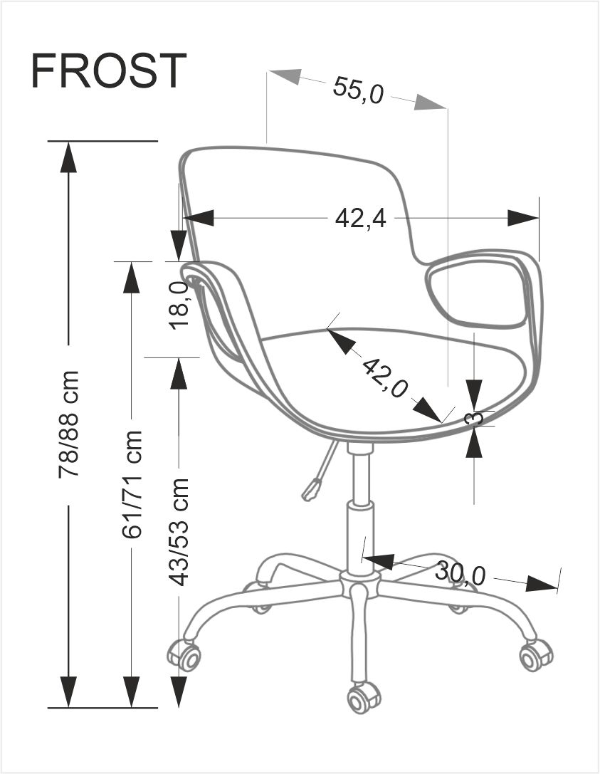 Fotel młodzieżowy Zella wyposażony jest w mechanizm podstawowy umożliwiający regulację wysokości siedziska w zakresie od 43 do 53 cm, co pozwala łatwo dopasować krzesło do wzrostu użytkownika oraz wysokości biurka. Całkowita wysokość fotela wynosi od 78 do 88 cm, natomiast szerokość i głębokość wynoszą odpowiednio 58 oraz 55 cm, co zapewnia komfortową przestrzeń do siedzenia. Stabilna podstawa wspiera bezpieczne użytkowanie, a możliwość regulacji sprawia, że fotel młodzieżowy do biurka Zella jest praktycznym wyborem zarówno dla młodszych, jak i starszych użytkowników. Odpowiednie dopasowanie wysokości siedziska wpływa na wygodę pracy i sprzyja zachowaniu prawidłowej pozycji ciała.