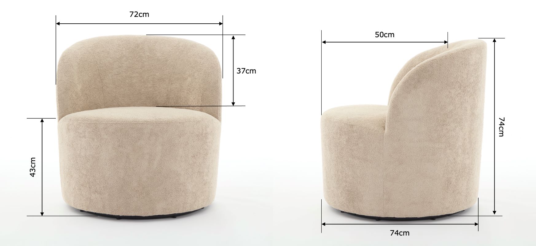 Beżowy odcień tkaniny wpisuje się w aktualne trendy wnętrzarskie, ułatwiając dopasowanie fotela do jasnych, minimalistycznych aranżacji oraz do bardziej wyrazistych kompozycji w stylu modern, loft czy scandi. To mebel, który szybko staje się naturalnym uzupełnieniem przestrzeni, nie dominując jej, lecz harmonijnie współgrając z pozostałym wyposażeniem.