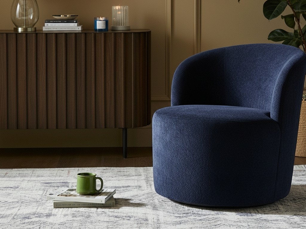 Fotel obrotowy Monte w kolorze granatowym to propozycja dla osób, które poszukują połączenia komfortu, praktyczności i ponadczasowej estetyki. Jego miękka, przyjemna w dotyku tkanina Monte wyróżnia się subtelną, włoskowatą strukturą, która nadaje meblowi ciepły i przytulny charakter. To fotel idealny do salonu, sypialni, domowego biura lub czytelni, gdzie liczy się zarówno styl, jak i wygoda codziennego użytkowania.
