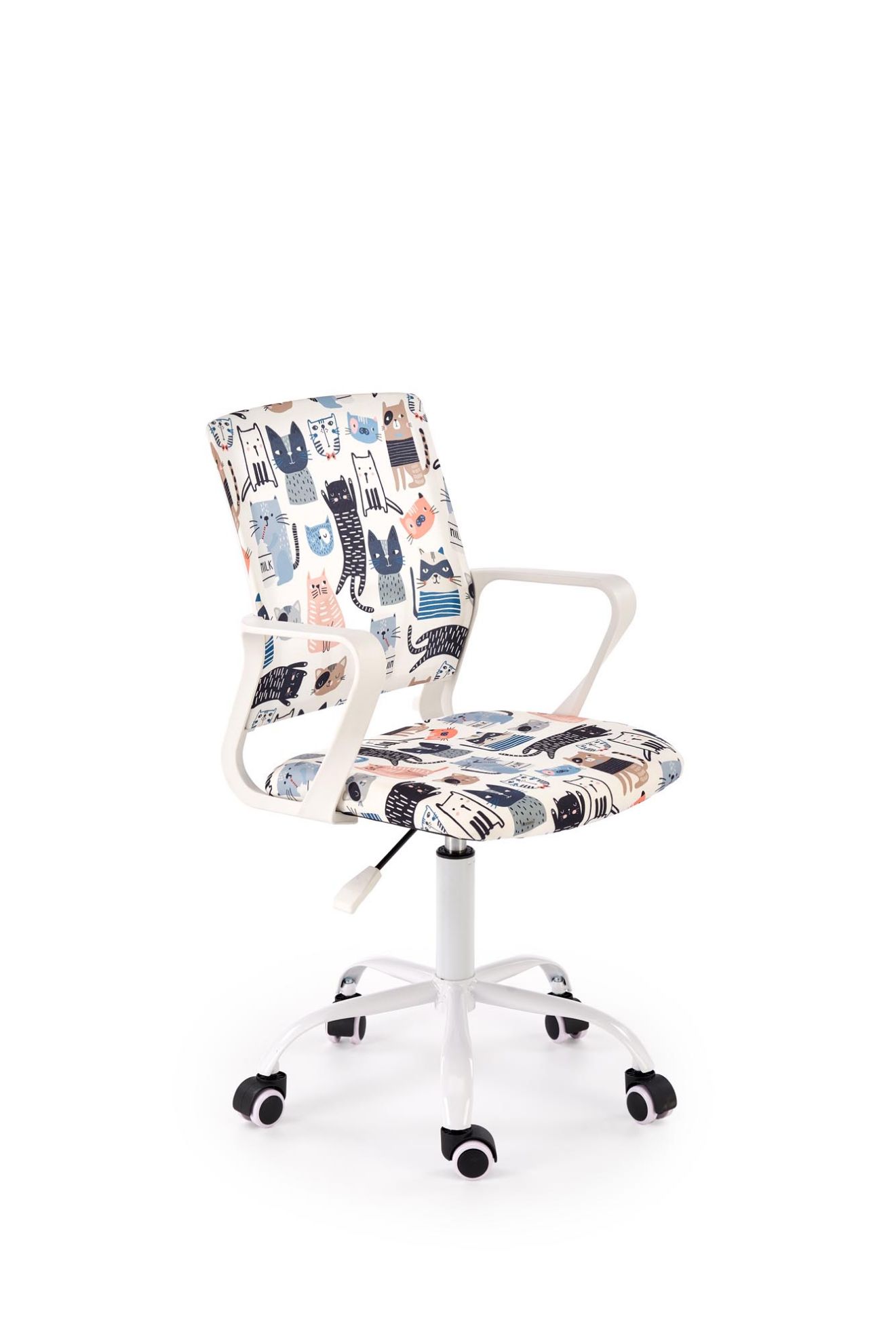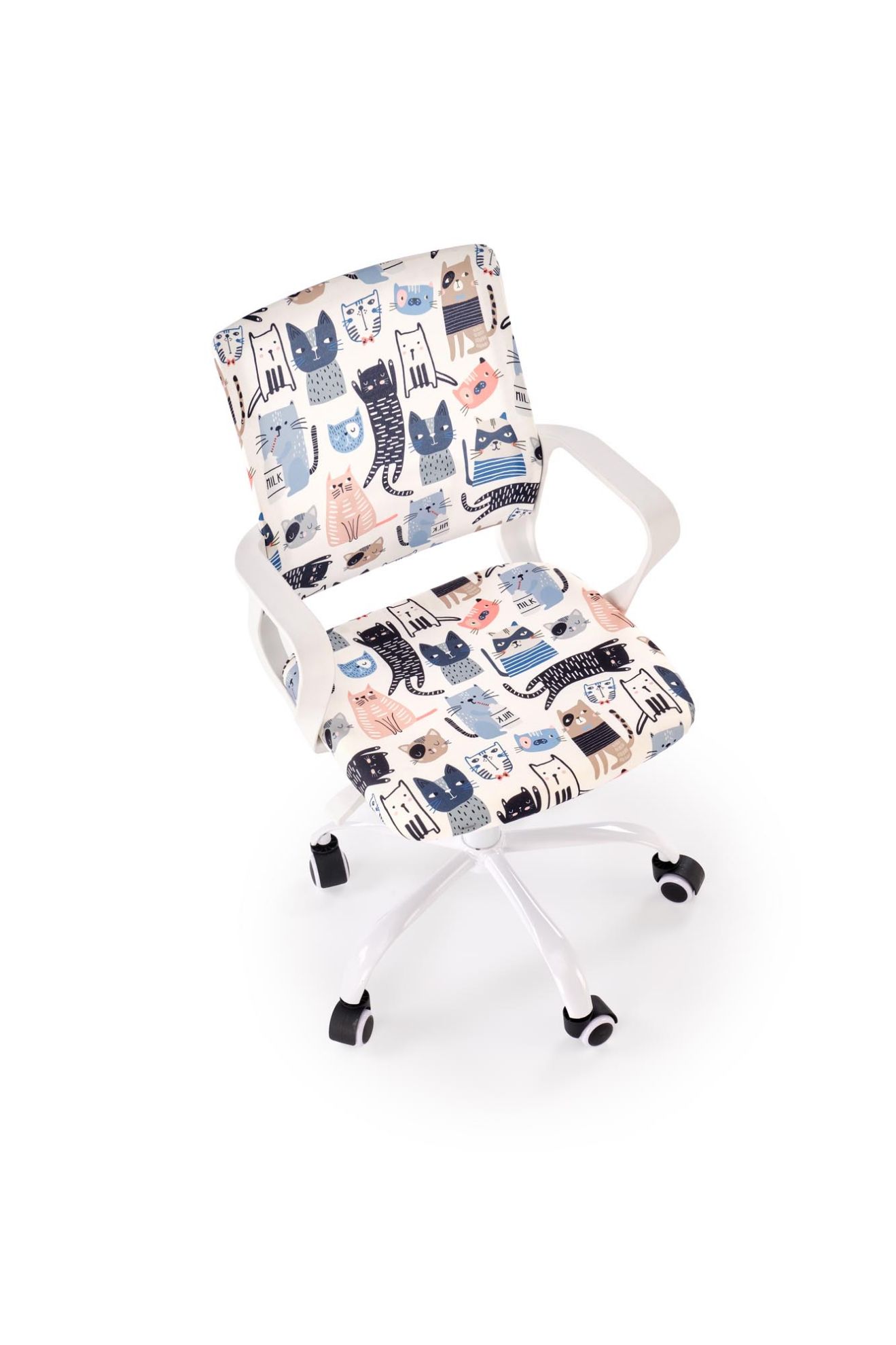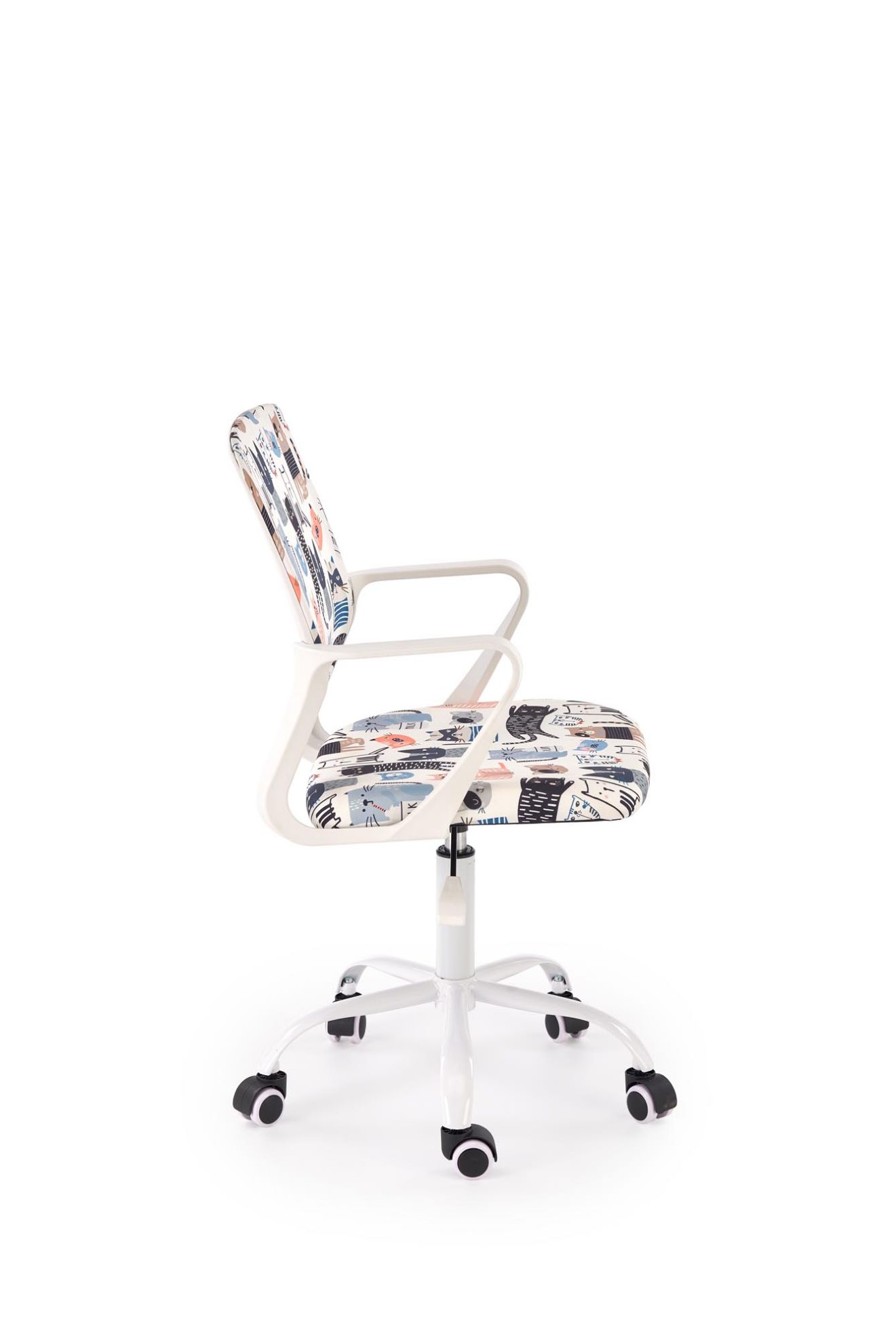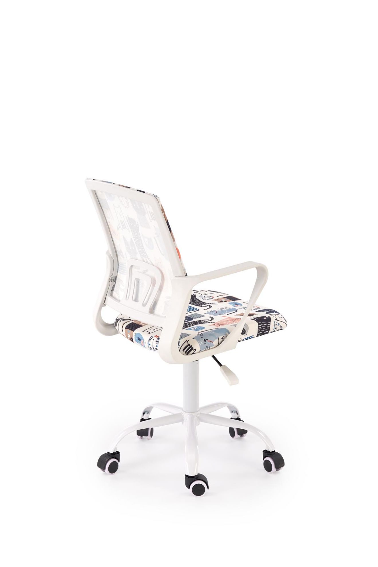 Fotel obrotowy Twisted to propozycja dla dzieci, które potrzebują komfortowego i kolorowego miejsca do nauki, zabawy i relaksu. Wykonany z trwałej tkaniny, fotel wyróżnia się żywymi, wielokolorowymi wzorami, które wprowadzają radosną atmosferę do każdego pokoju dziecięcego. Dzięki ergonomicznej konstrukcji i regulacji wysokości fotel dopasowuje się do wzrostu dziecka, zapewniając wygodne siedzenie zarówno przy biurku, jak i przy kreatywnych zajęciach.