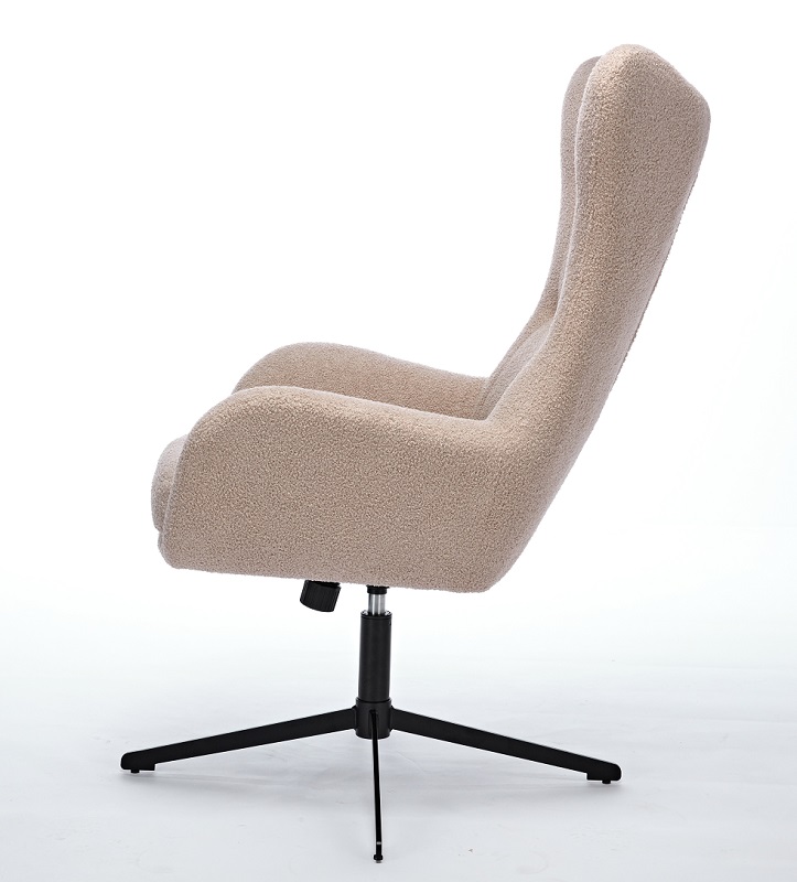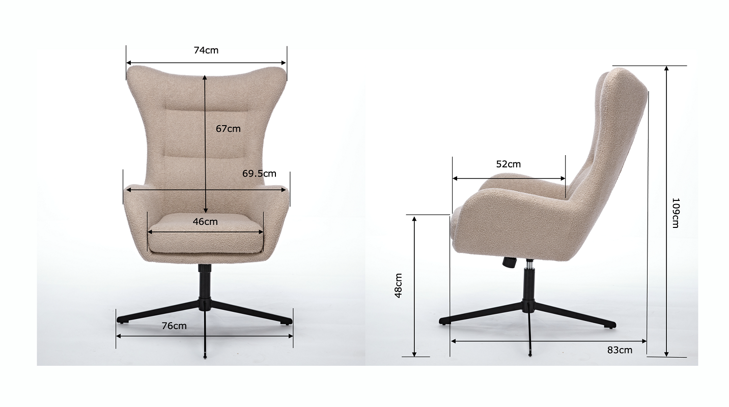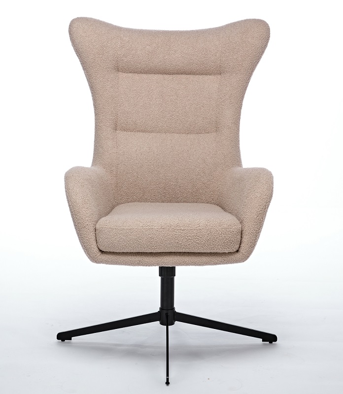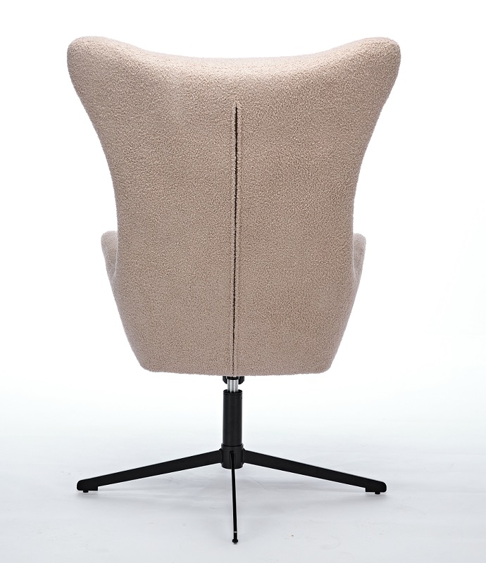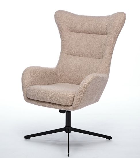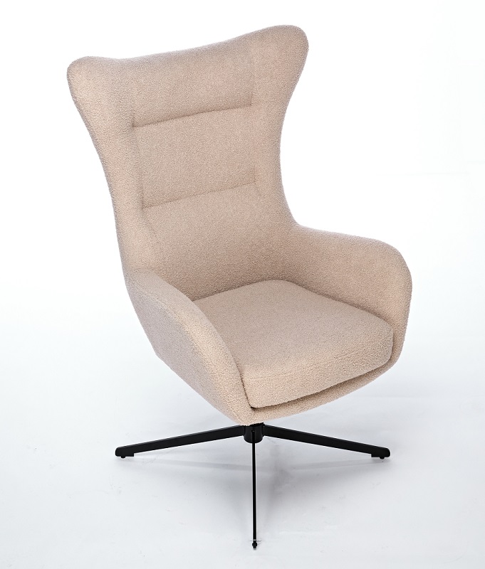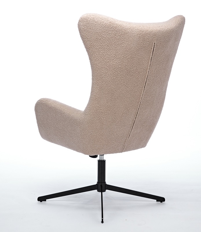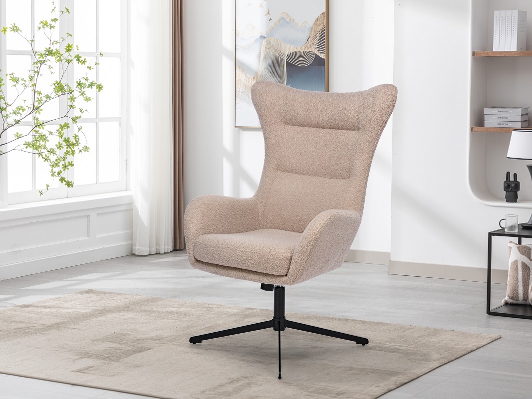 Fotel obrotowy Zola w stylu uszak. Fotel wykonany z miękkiej tkaniny bukla w subtelnych odcieniach beżu i różu, które pięknie rozświetlają przestrzeń, jednocześnie dodając jej przytulnego charakteru.Ten wyjątkowy mebel łączy klasyczną formę z modnym designem, oferując nie tylko wygodę, ale i elegancję.