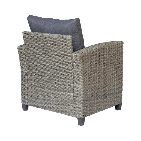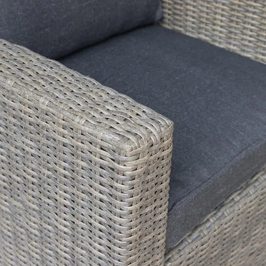 Fotel Stockholm nie tylko zachwyca estetyką, ale również funkcjonalnością — ergonomiczne oparcie i podłokietniki zapewniają wygodę podczas długiego relaksu na świeżym powietrzu. Technorattanowa plecionka jest wytrzymała i odporna na działanie czynników atmosferycznych, co sprawia, że fotel wymaga minimalnej konserwacji.