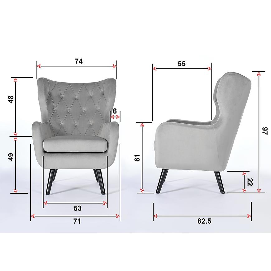 Solidne nóżki, wykonane z wytrzymałego drewna, dodają meblowi stabilności i elegancji. Ich kolorystyka utrzymana jest w czerni, co doskonale komponuje się z subtelnym blaskiem aksamitnej tapicerki.