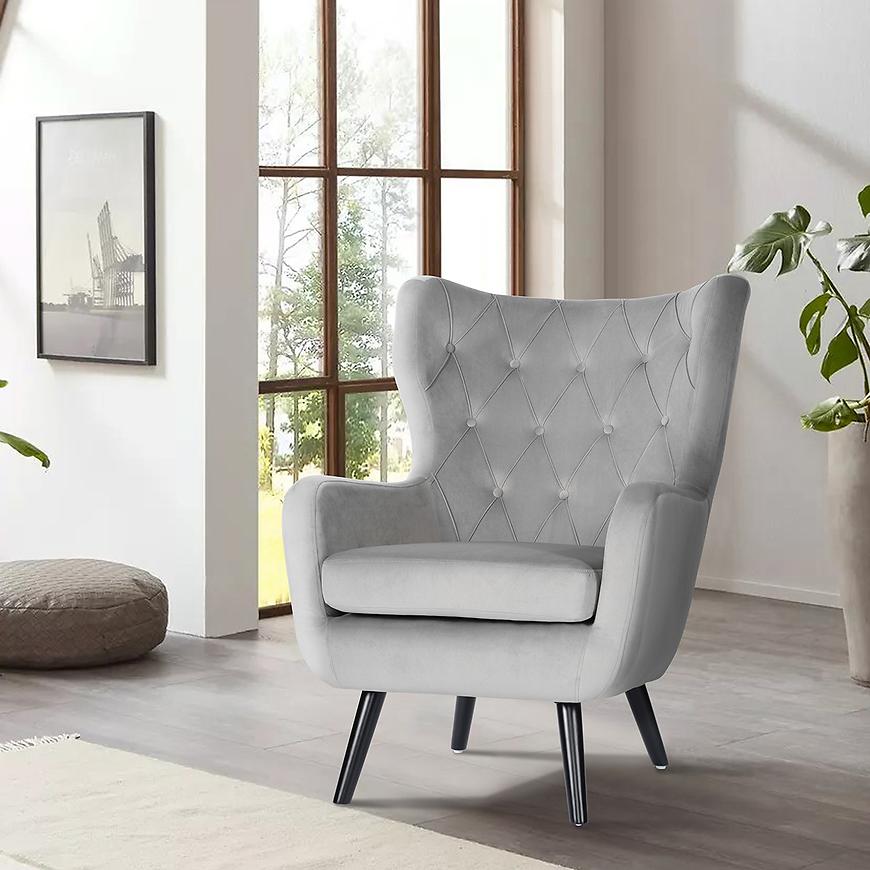 Fotel Oskar w kolorze szarym to eleganckie połączenie stylu i komfortu, stworzone z myślą o najbardziej wymagających użytkownikach. Jego tapicerka wykonana jest z delikatnego aksamitu, nadając mu niepowtarzalny charakter i luksusowy wygląd.