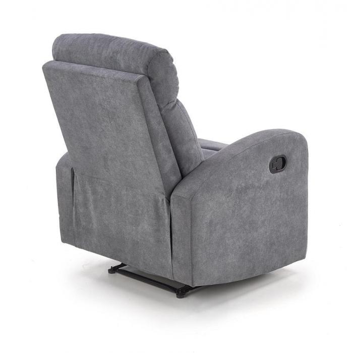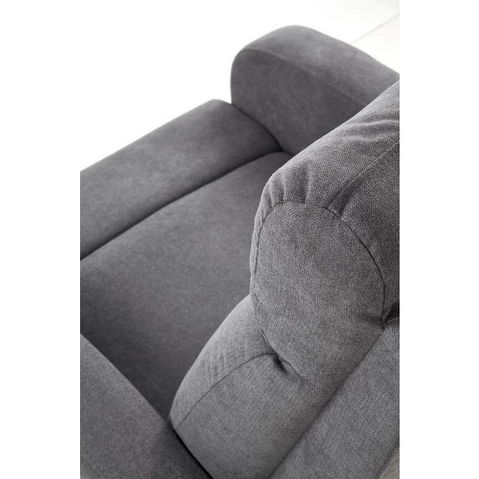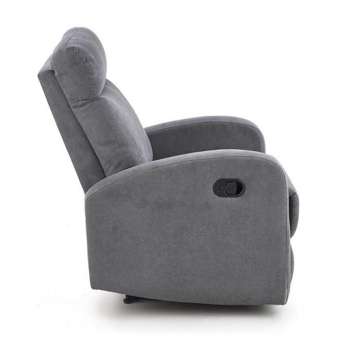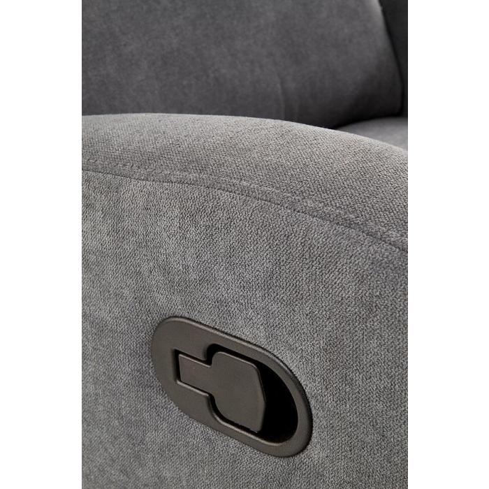 Fotel Oslo został wyposażony w funkcję relaks, sterowaną za pomocą manualnej dźwigni znajdującej się w podłokietnikach. Mechanizm działa niezależnie - obydwie części (oparcie i podnóżek), można ustawić dowolnie dostosowując je do swoich potrzeb. Zestaw wykonany jest z tkaniny w kolorze popielatym.