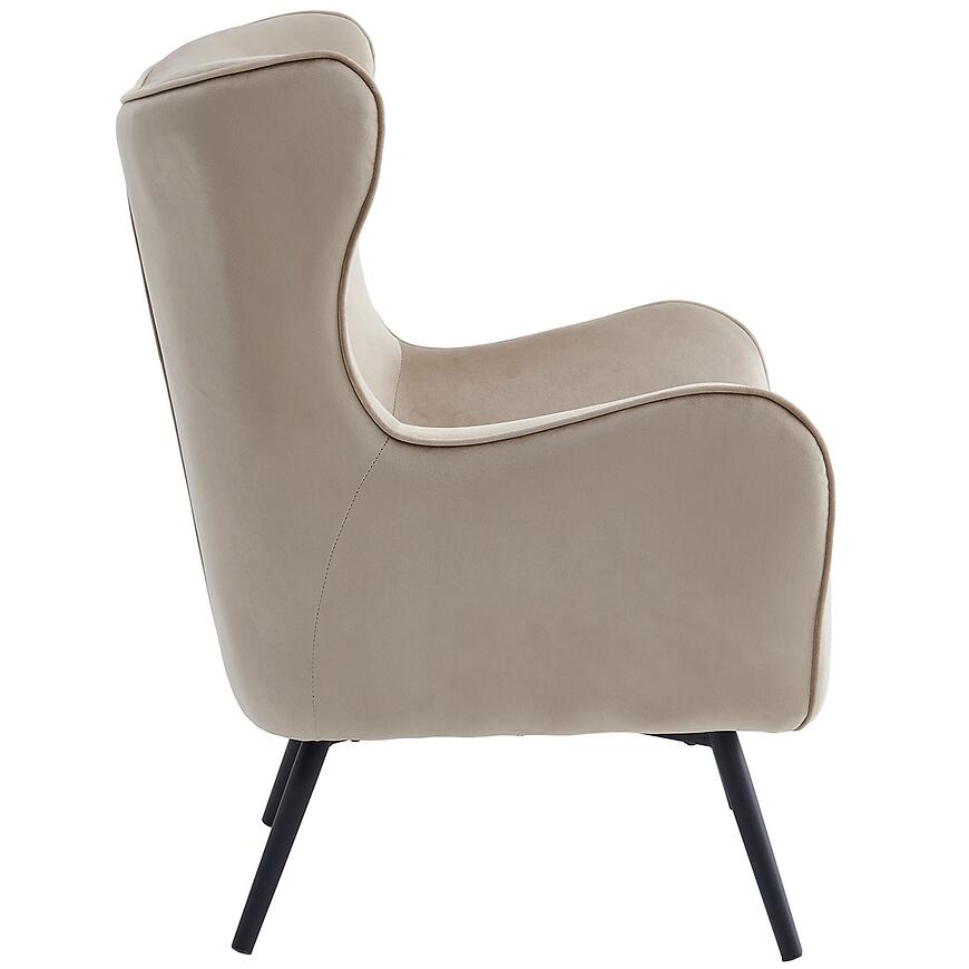 Wypełnienie z wysokiej jakości pianki zapewnia komfort podczas siedzenia – powierzchnia jest sprężysta, ale jednocześnie odpowiednio miękka, co sprawia, że fotel doskonale nadaje się zarówno do dłuższego relaksu, jak i codziennego użytkowania. Wyprofilowane oparcie oraz właściwie dobrana głębokość siedziska pomagają uzyskać naturalną i wygodną pozycję ciała. Stabilne, czarne nogi dodają konstrukcji nowoczesnego wyglądu, a jednocześnie gwarantują solidność i trwałość na długie lata.