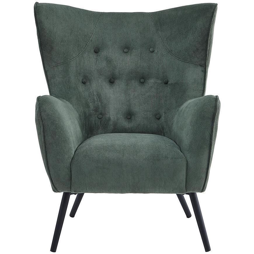 Siedzisko wypełnione wysokiej jakości pianką zapewnia odpowiednią sprężystość i komfort podczas siedzenia, zachowując jednocześnie trwałość i kształt przez długi czas. Wyprofilowane oparcie wspiera plecy, a odpowiednia głębokość siedziska pozwala na wygodne ułożenie ciała w każdej pozycji. Stabilna konstrukcja na czarnych nogach gwarantuje bezpieczeństwo i solidność, a lekka wizualnie forma fotela nadaje mu elegancji i sprawia, że mebel nie przytłacza przestrzeni.