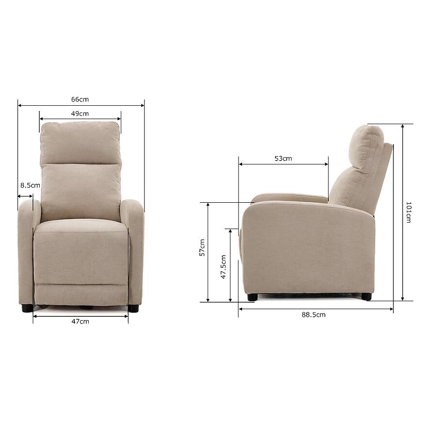 Fotel został zaprojektowany tak, aby zapewnić komfort zarówno podczas krótkiego odpoczynku, jak i dłuższego relaksu. Wysokość całkowita 101 cm, szerokość 66 cm oraz głębokość 89 cm tworzą proporcjonalną bryłę, która oferuje stabilne podparcie pleców.
