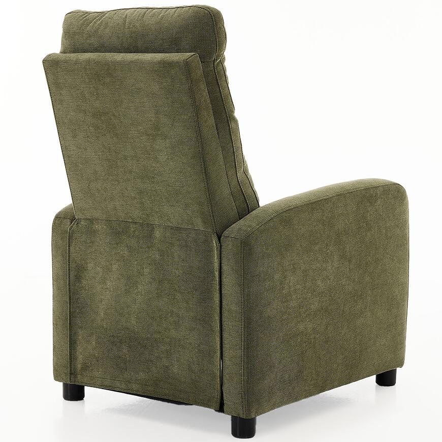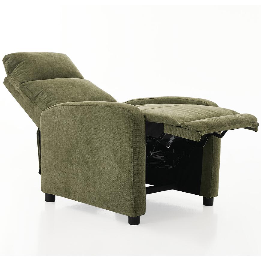 Tapicerka wykonana z tkaniny szenilowej wyróżnia się miękką, aksamitną fakturą, która zwiększa komfort użytkowania. Zielony kolor tapicerki wprowadza do wnętrza przyjemny, naturalny akcent, który harmonijnie łączy się z innymi elementami wyposażenia.