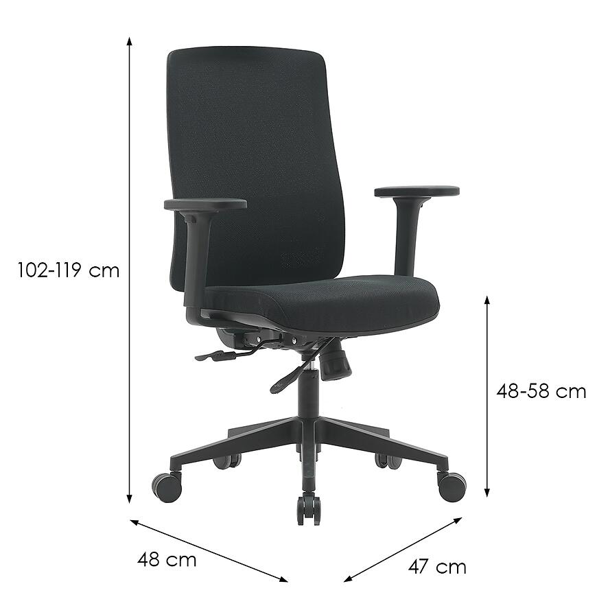 Fotel biurowy Popstar Lux Tkanina czarny to wygodne krzesło obrotowe stworzone z myślą o ergonomii i elegancji. Wyposażony w regulowane podłokietniki, oparcie i zagłówek, zapewnia komfort pracy przez wiele godzin. Siedzisko z piankowym wypełnieniem oraz tapicerka z tkaniny gwarantują wygodę i trwałość. Regulowana wysokość siedziska od 48 do 58 cm oraz całkowita wysokość w zakresie 102–119 cm sprawiają, że fotel doskonale dopasowuje się do indywidualnych potrzeb.