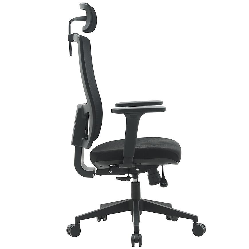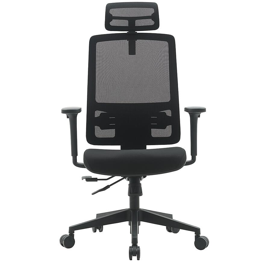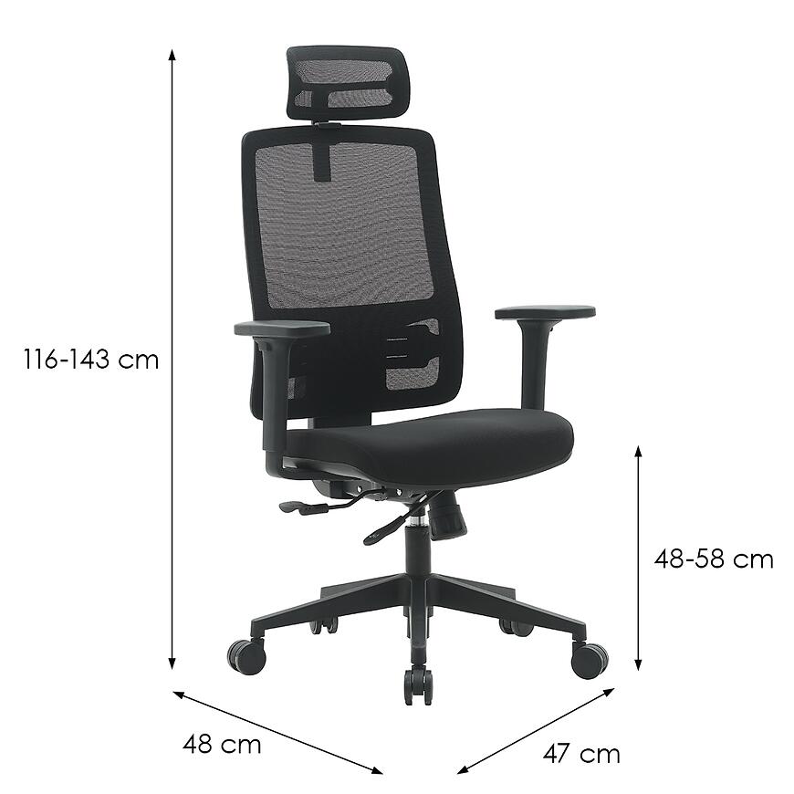 Ergonomiczny fotel biurowy Popstar Mesh Lux czarny zapewnia wygodę i pełne dopasowanie do użytkownika. Wyposażony w regulowane podłokietniki, zagłówek i oparcie, wspiera prawidłową postawę podczas pracy. Siedzisko wypełnione pianką gwarantuje komfort, a tapicerka z siatki i tkaniny dba o przewiewność. Regulacja wysokości siedziska 48–58 cm i całkowitej wysokości 116–143 cm pozwala dopasować fotel do indywidualnych potrzeb.