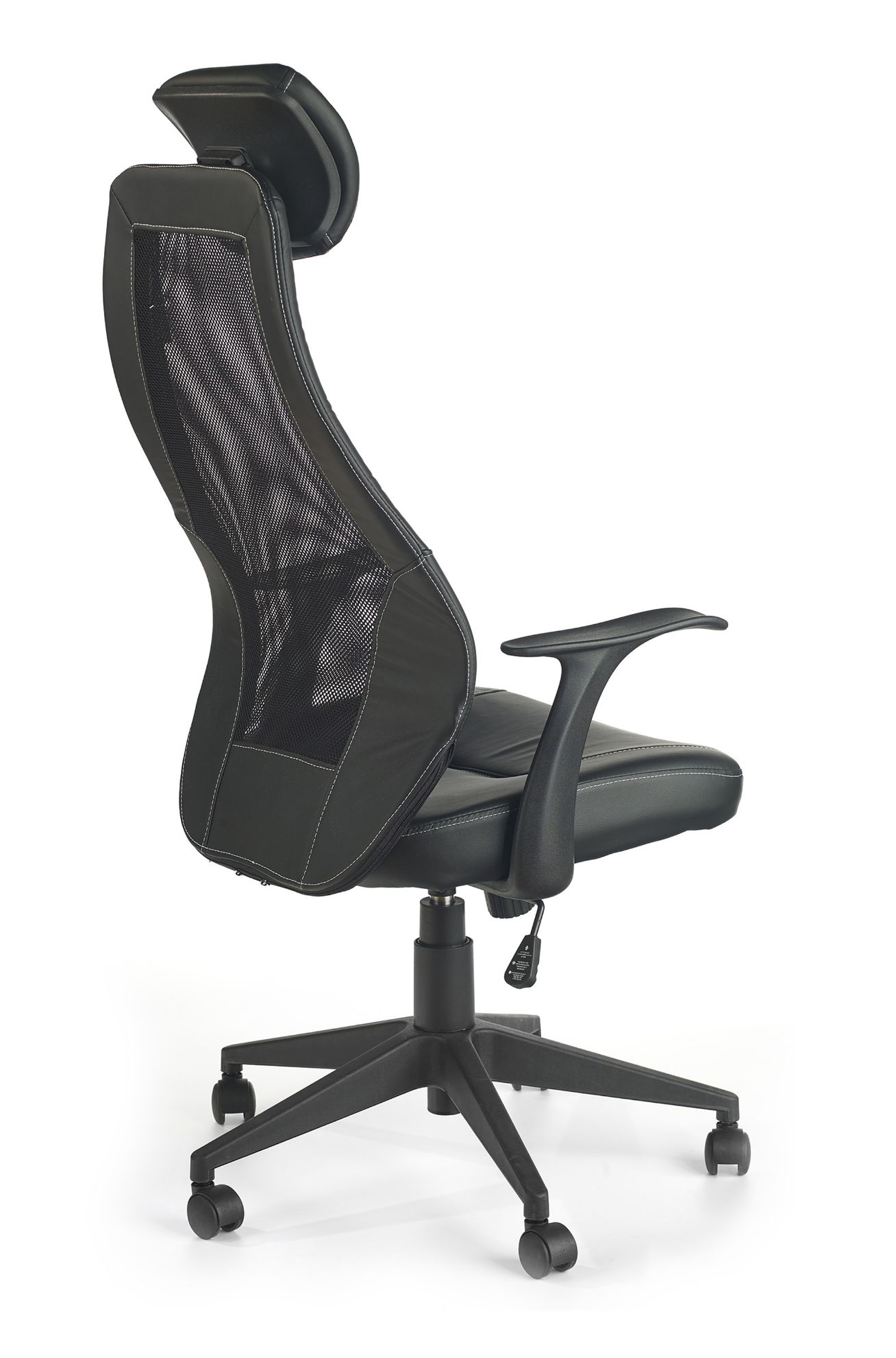 - Materiał: Fotel wykonany z połączenia eco skóry i siatki, co zapewnia trwałość oraz oddychalność, gwarantując komfort przez cały dzień pracy.