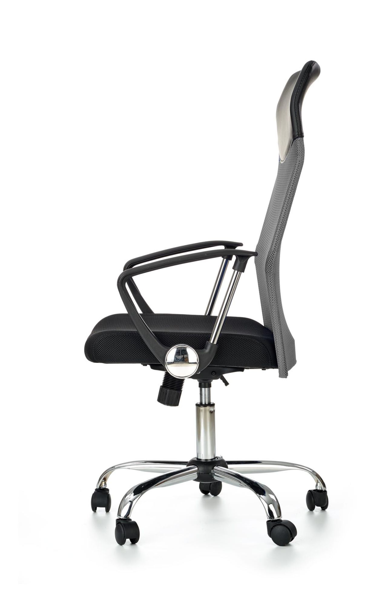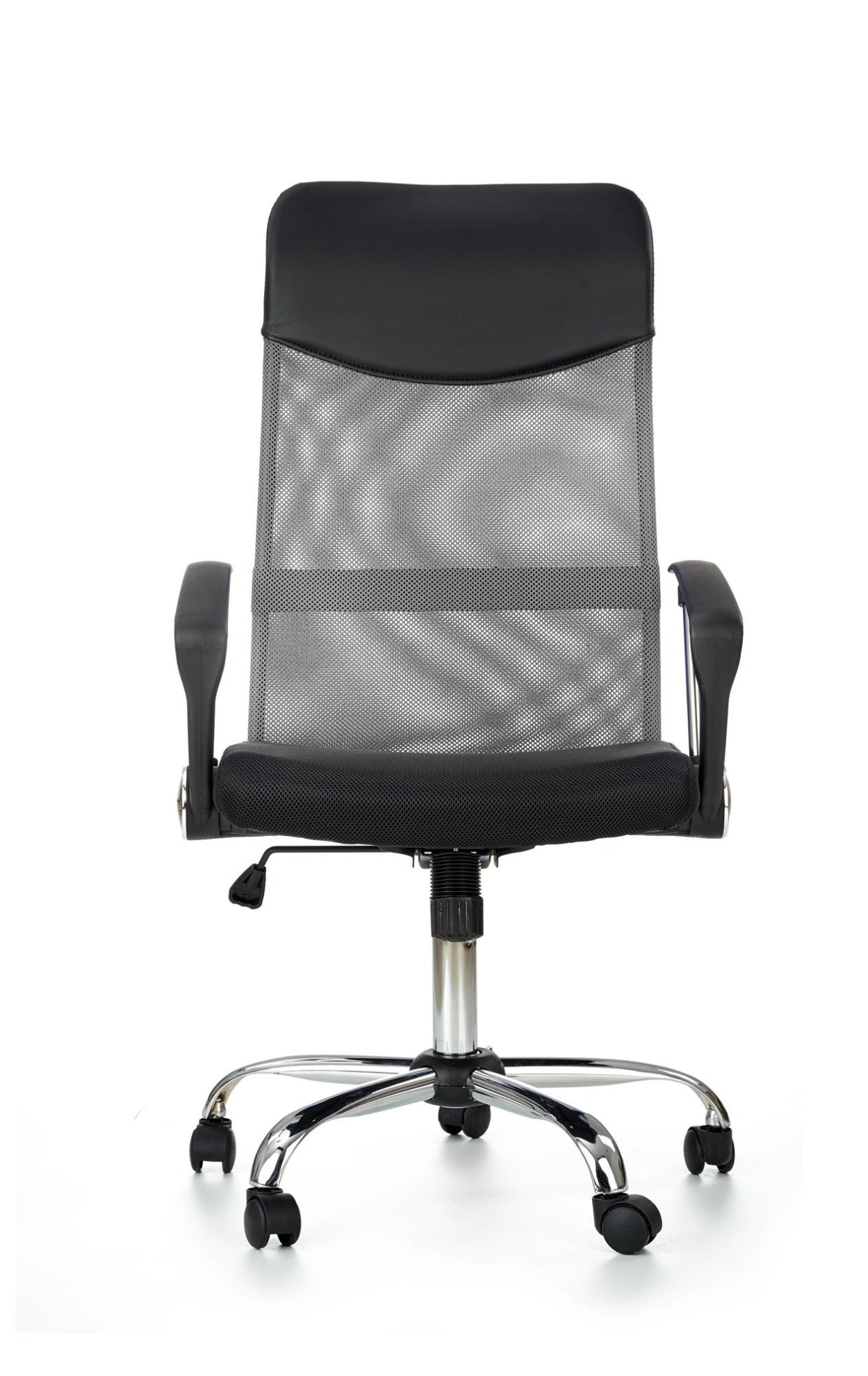 Wymiary fotela Felix wynoszą 61 cm szerokości, 63 cm głębokości oraz regulowana wysokość od 110 do 120 cm, co umożliwia dostosowanie jego pozycji do indywidualnych potrzeb użytkownika i wysokości biurka. Siedzisko oraz oparcie wykonano z wysokiej jakości tkaniny membranowej i siatki, która zapewnia cyrkulację powietrza, co zapobiega nadmiernemu nagrzewaniu się pleców i zwiększa komfort podczas pracy. Połączenie tkaniny i siatki w klasycznym popielatym kolorze nadaje fotelowi elegancji i profesjonalnego wyglądu, a jednocześnie sprawia, że pasuje on do różnorodnych aranżacji biurowych.