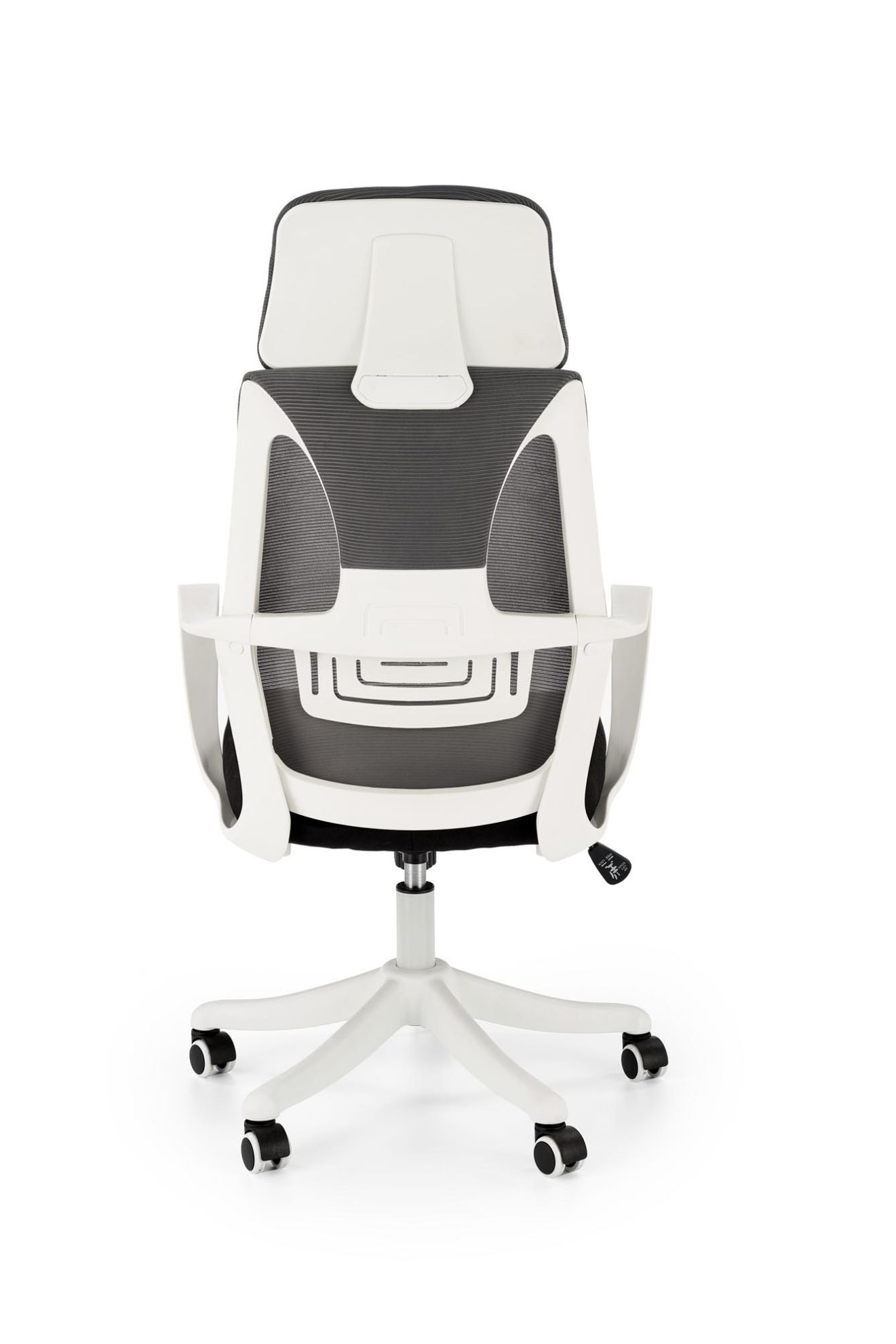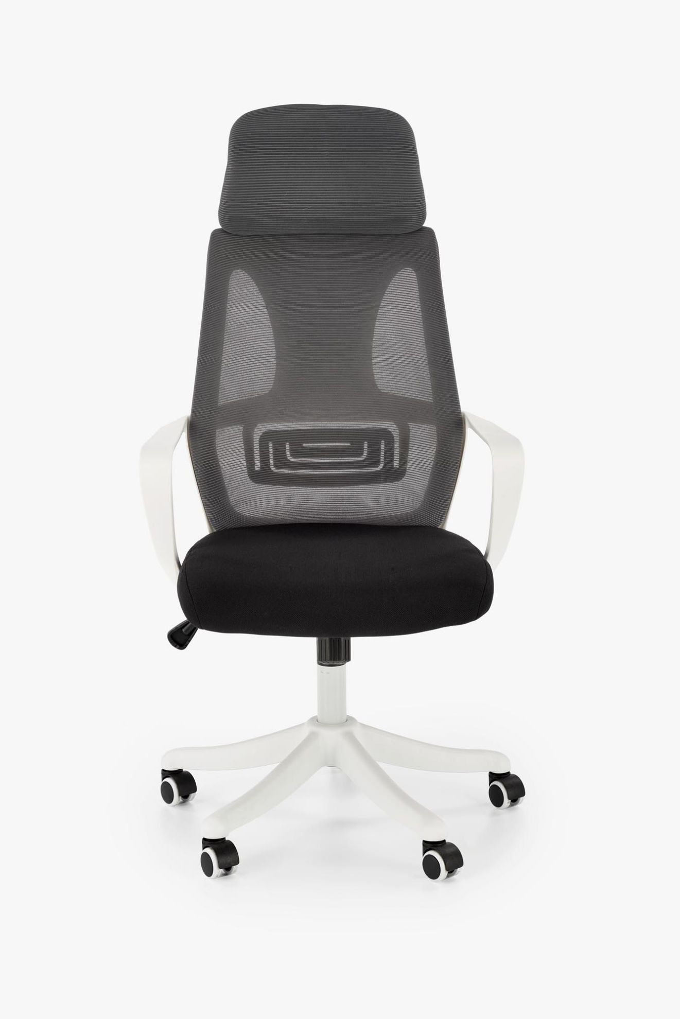 Materiał tkaniny membranowej / siatki w kolorze czarno-popielatym nie tylko prezentuje się stylowo, ale również pozwala na swobodny przepływ powietrza, co jest istotne podczas długotrwałego siedzenia. Kombinacja kolorów dodaje fotelowi elegancji i nowoczesności, pasując zarówno do klasycznych, jak i nowoczesnych przestrzeni biurowych.