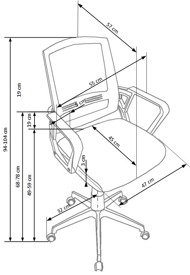 Regulowana wysokość – zakres od 94 cm do 104 cm, siedzisko regulowane w zakresie 49-59 cm.