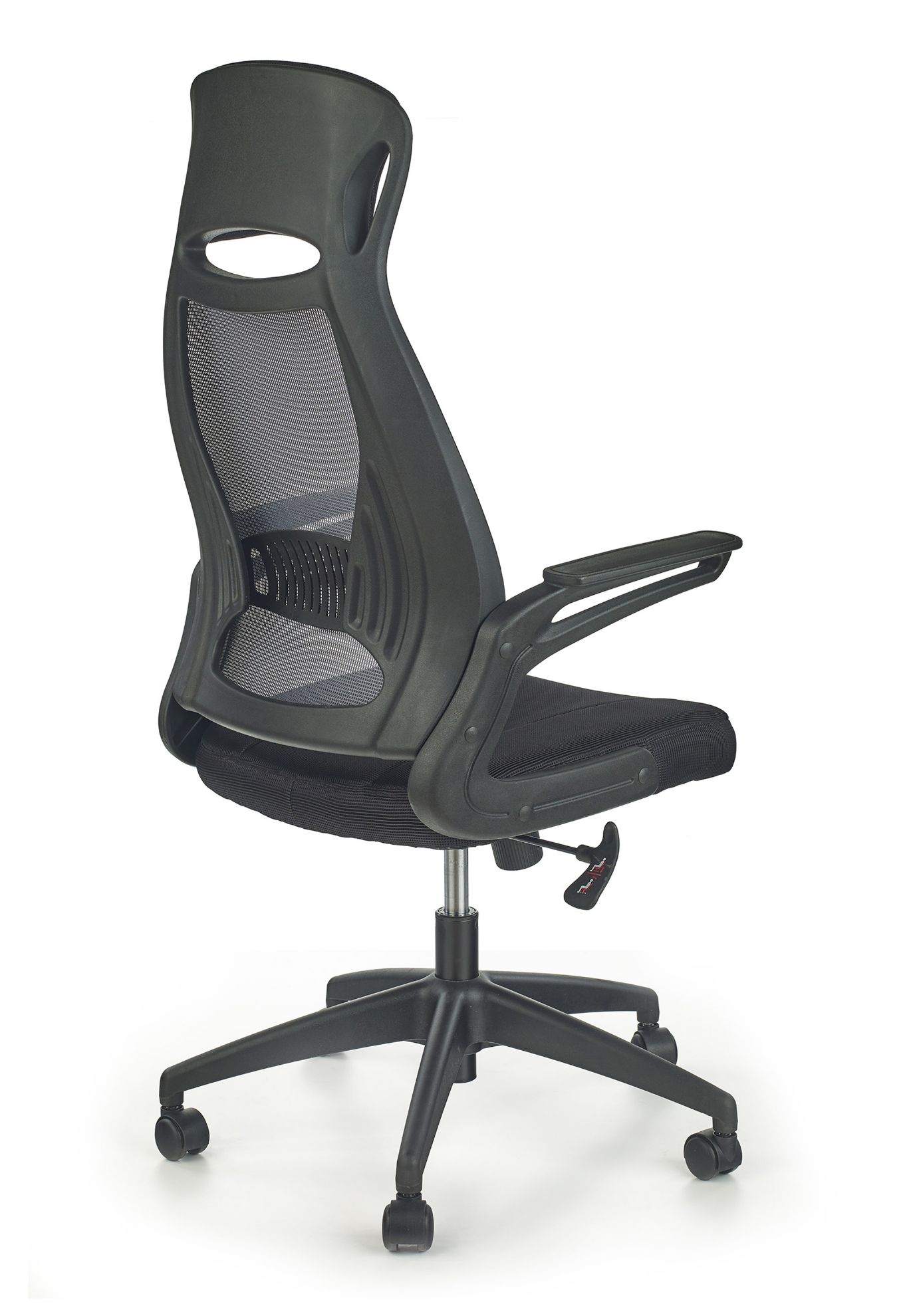Fotel jest wykonany z wysokiej jakości tkaniny membranowej i siatki, które zapewniają odpowiednią wentylację, zapobiegając poceniu się, co jest szczególnie ważne przy długotrwałym użytkowaniu. Kolor czarno-popielaty dodaje mu nowoczesnego charakteru, pasującego do różnych stylów biurowych.