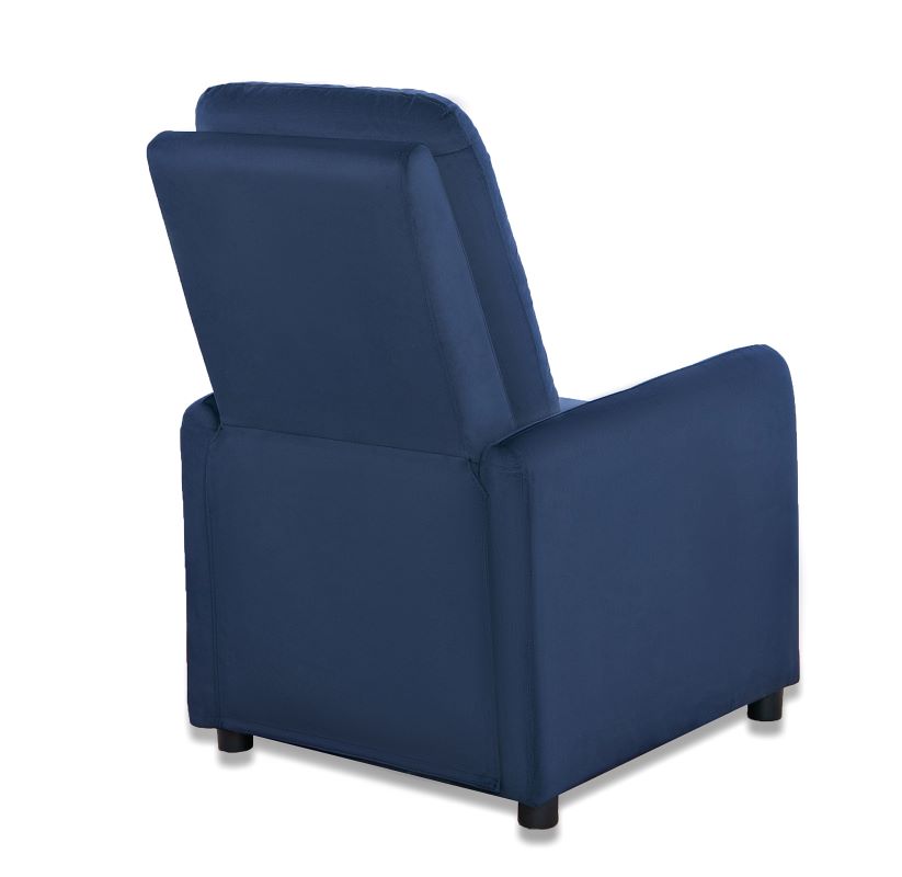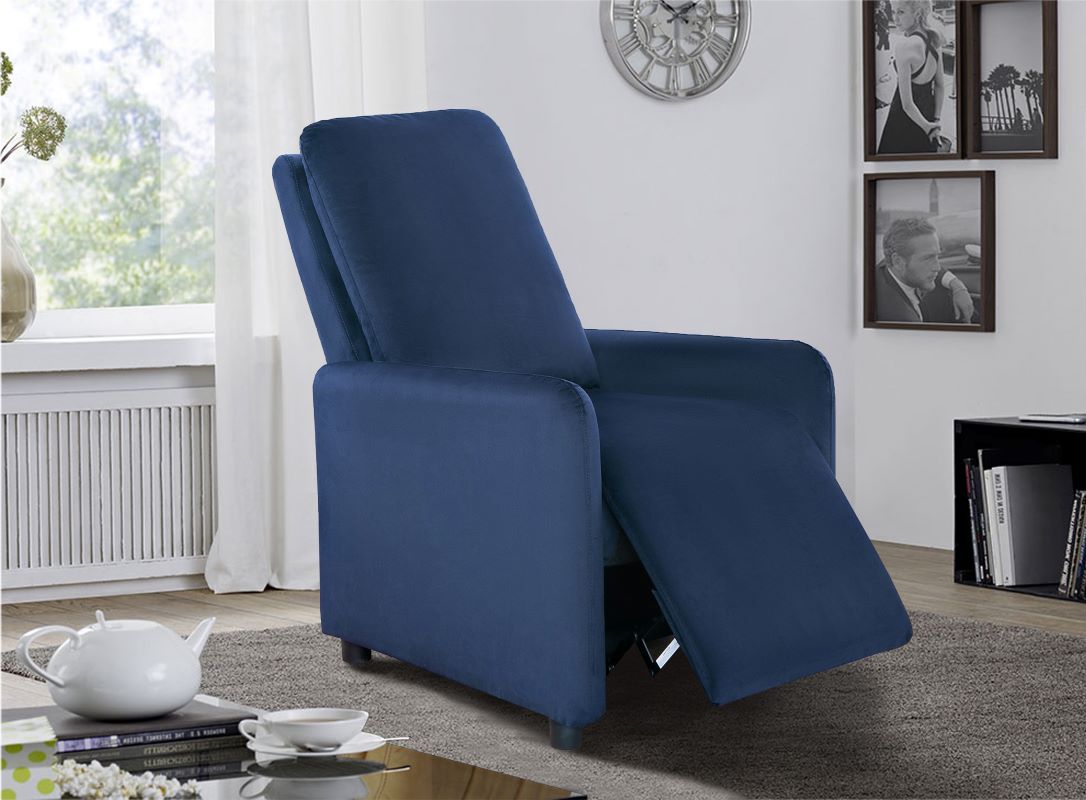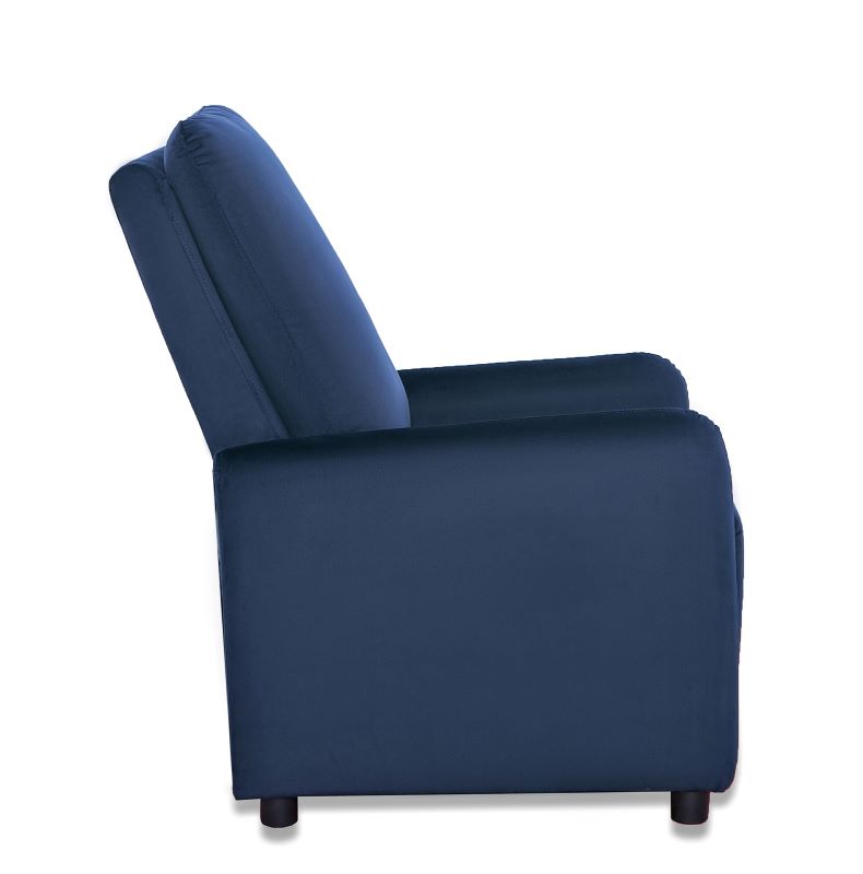 Fotel Remi dostępny w kolorze ciemny granat, ciemny popiel oraz beż. Fotel wykonany w tkaninie welurowej, która jest miękka i przyjemna w dotyku, ponadto tkanina nie gniecie się łatwo, jest wytrzymała, odporna na rozrywanie i rozciąganie. Fotel posiada delikatnie wyprofilowane kształty. Dzięki funkcji push-back wystarczy delikatnie odchylić się do tyłu, aby poczuć, jak oparcie i podnóżek idealnie dopasowują się do ciała. Siedzisko wypełnione jest sprężyną falistą oraz pianką wysokoelastyczną, które dodatkowo zapewnią klientowi komfort wypoczynku. Nóżki plastikowe czarne o wysokości 5 cm. Maksymalne obciążenie fotela wynosi 110 kg.