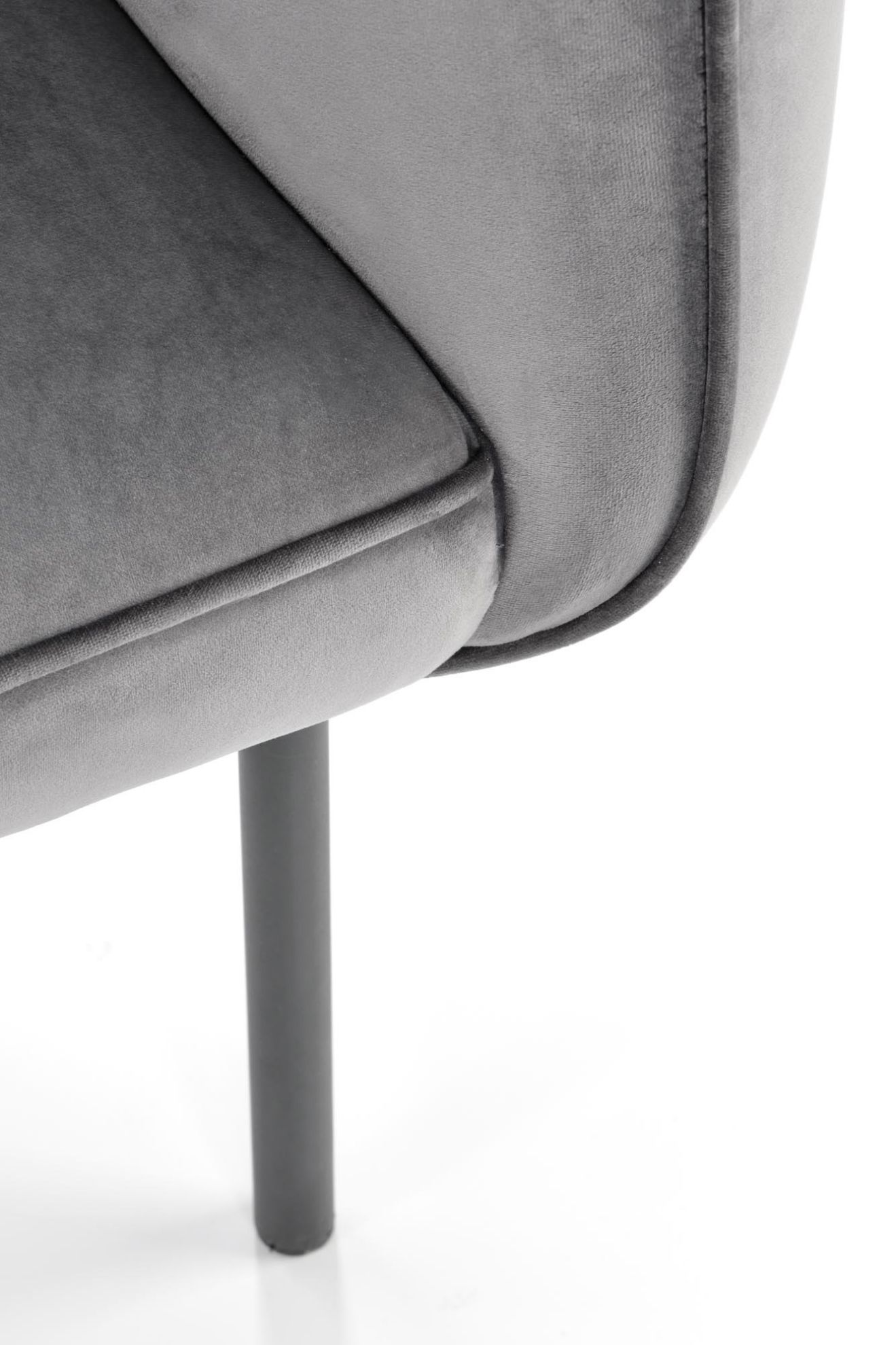 Tapicerka fotela wykonana jest z miękkiej i przyjemnej w dotyku tkaniny velvet o eleganckim popielatym odcieniu. Ta delikatna, jedwabista tkanina nie tylko dodaje fotelowi wyjątkowego uroku, ale również zapewnia niezrównany komfort podczas długich godzin relaksu. Velvet to materiał, który zawsze pozostaje na czasie i nadaje wnętrzu wyjątkowego charakteru.