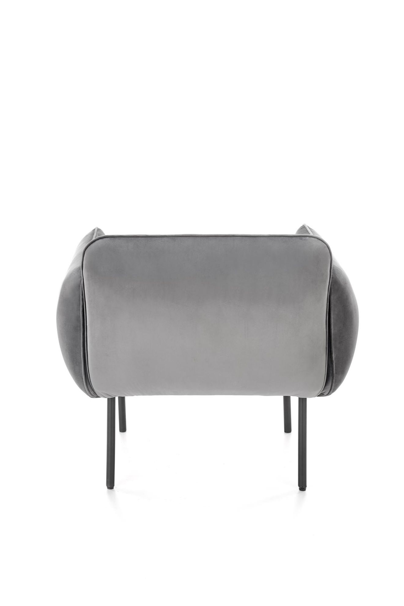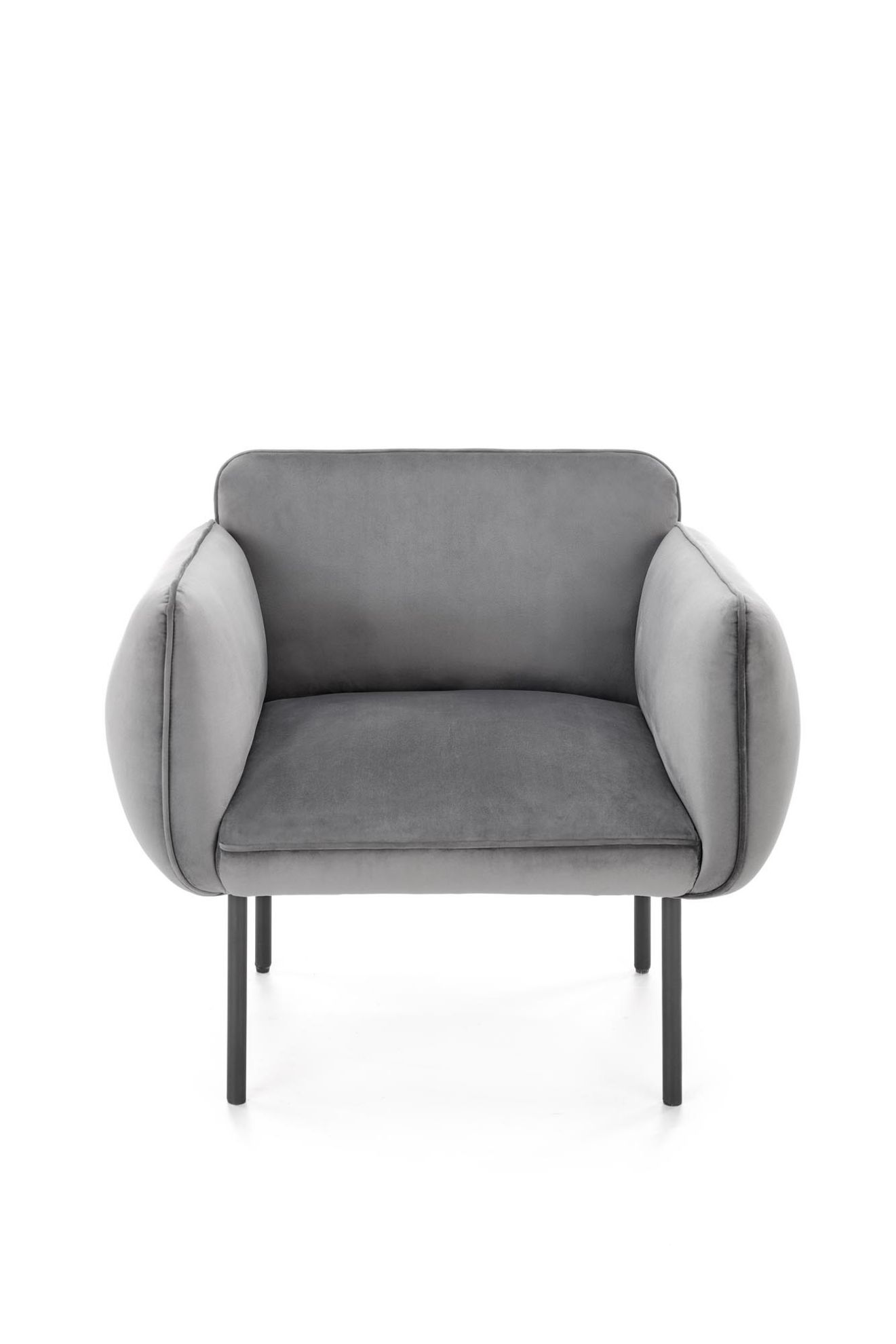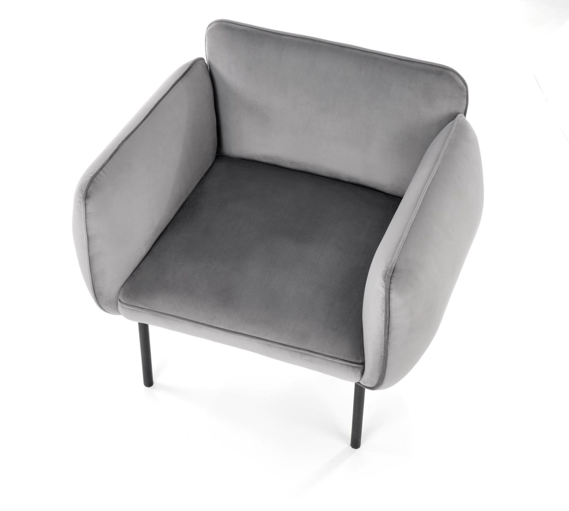Nogi fotela zostały wykonane z trwałej stali, która została malowana proszkowo na elegancki czarny kolor. Te solidne nogi nie tylko dodają stabilności fotelowi, ale również tworzą kontrastowy efekt w stosunku do delikatnej tapicerki, co nadaje fotelowi wyjątkowego charakteru.