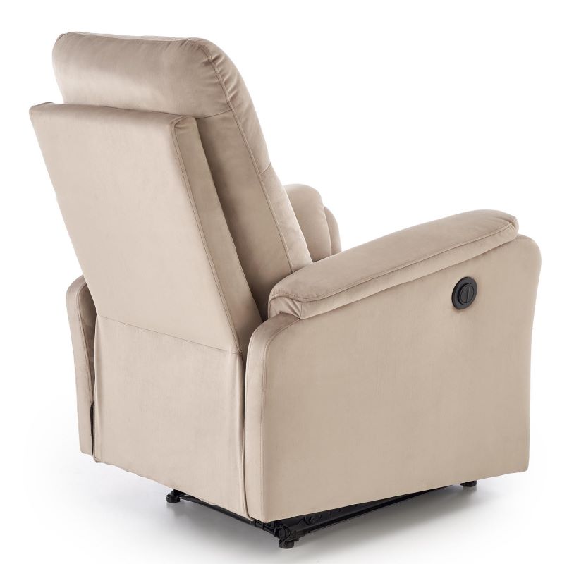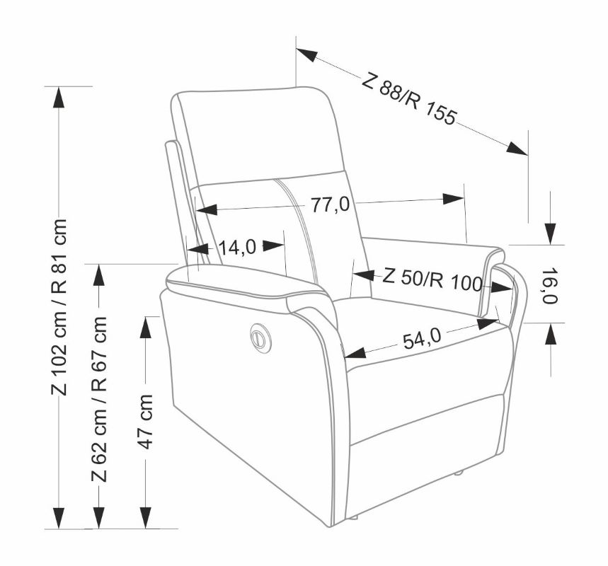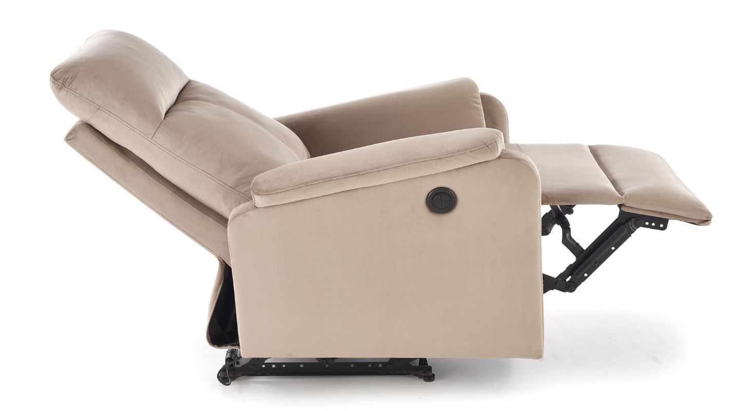 Fotel wypoczynkowy z funkcją elektrycznego rozkładania. Wykonany w tkaninie Velvet, znanej ze swojej miękkości i subtelnego połysku, nadaje fotelowi luksusowy wygląd, który jest zarazem przyjemny w dotyku. Funkcja elektrycznego rozkładania fotela umożliwia łatwe i wygodne dostosowanie pozycji siedzenia, zapewniając maksymalny komfort. Wystarczy wcisnąć przycisk, aby fotel płynnie przesunął się do pozycji półleżącej, co sprawia, że jest to idealne rozwiązanie do relaksu, oglądania telewizji czy odpoczynku po długim dniu. Elektryczny mechanizm działa cicho, zapewniając komfort bez hałasu. Jest to idealna opcja do salonu, gabinetu, czy strefy relaksu , oferująca doskonałą kombinację stylu, wygody i nowoczesnych technologii. Obciążenie fotela to 100 kg.