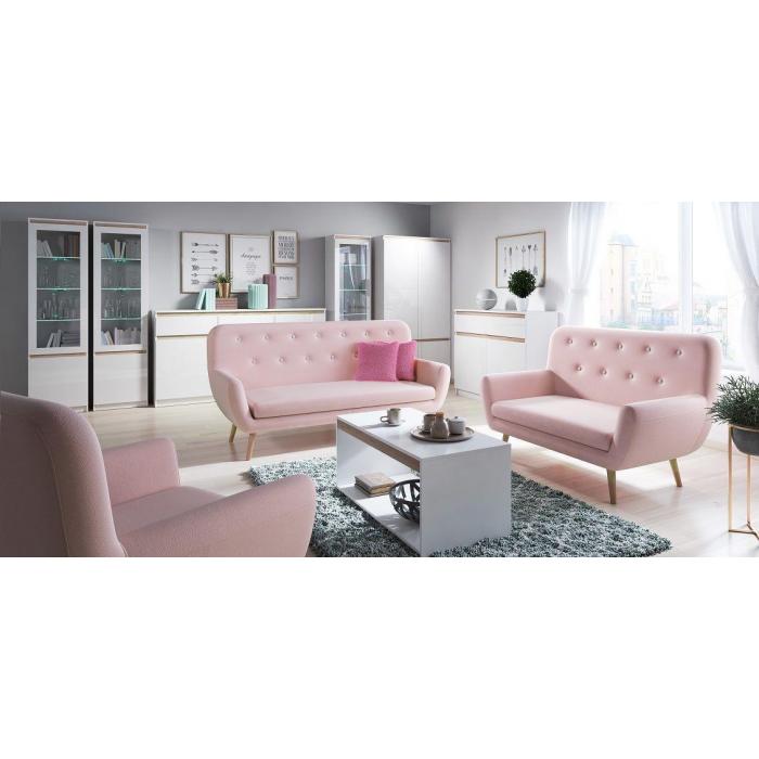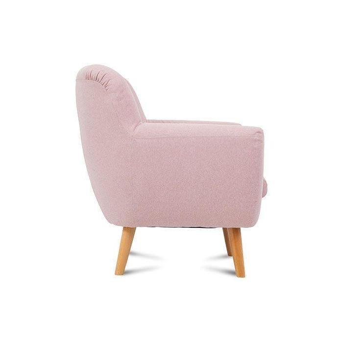 Fotel Sorento jest meblem łączącym w sobie zawsze ceniony styl retro z nowoczesną formą. Wyróżnia się zaokrąglonymi kształtami siedziska i podłokietników, dzięki czemu wprowadzi do pomieszczenia klimat rodem z lat ‘60. Różowa kolorystyka jego obicia przywodzi na myśl tamten okres i komponuje się doskonale z białymi elementami aranżacji salonu. Warstwa wizualna tego modelu została podkreślona za pomocą guzików tapicerowanych tkaniną oraz smukłych drewnianych nóżek w kolorze buku, na których umieszczono mebel. Fotel Sorento jest również bardzo funkcjonalnym rozwiązaniem. W jego konstrukcji zastosowano sprężyny faliste. To popularne rozwiązanie zapewnia trwałość siedziska i brak odkształceń. Ten różowy fotel będzie doskonałym uzupełnieniem pomieszczenia urządzonego w unikatowym stylu.