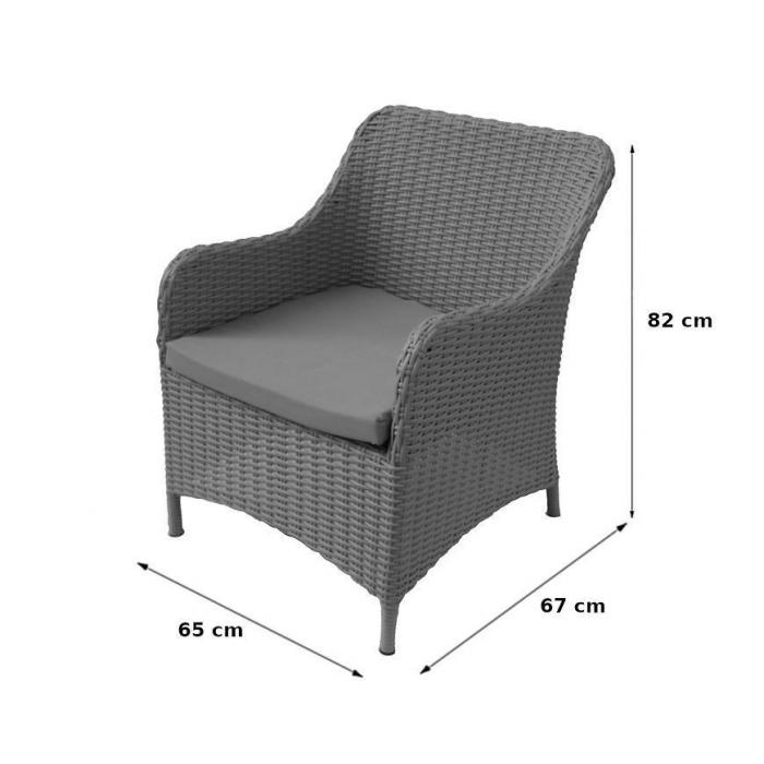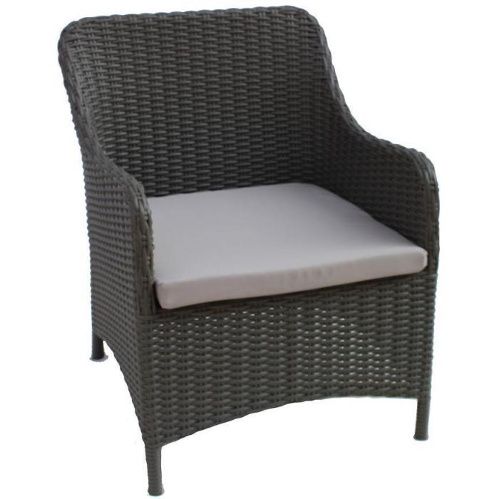 Materiał wykonania to technorattan. Konstrukcja mebla jest metalowa. Szerokie podłokietniki oraz poduszka gwarantują maksimum komfortu i wygody. Fotel Lord można zakupić do kompletu mebli wypoczynkowych Malta, Cezar, Sofia i Holiday w tym samym kolorze.