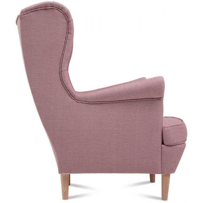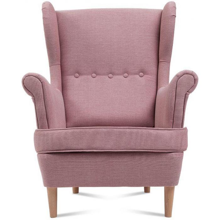 Fotel Vigo różowy już na pierwszy rzut oka zachęca do odpoczynku! Jest to miękki, przytulny fotel uszak, z piękną różową tapicerką, wysokimi podłokietnikami, ozdobnymi guzikami w środkowej części oparcia oraz wysokimi, drewnianymi nóżkami w naturalnym kolorze. Doskonale sprawdzi się jako fotel do salonu w stylu angielskim oraz retro, można wstawić go do sypialni, gdzie ustawiony obok wysokiej lampy podłogowej stworzy przyjemny kącik do odpoczynku. W jego siedzisku zastosowano sprężyny faliste – decydują one o wygodzie fotela, ale zarazem jego wytrzymałości, gdyż siedzisko nie odkształca się nawet po długim czasie użytkowania. W naszej ofercie znaleźć można również różową pufę Vigo, którą wykorzystywać można także w charakterze podnóżka.