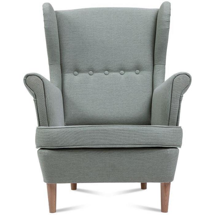 Jeśli szukasz fotela, który sprawdzi się w salonie i sypialni, zarówno jako samodzielny mebel, jak i uzupełnienie kompletu wypoczynkowego, wybierz fotel Vigo zielony. Jest to miękki, tapicerowany zielony fotel uszak, który zachwyca pięknym designem. Ma szerokie, wygodne siedzisko oraz oparcie, wysokie podłokietniki, oparcie zdobione jest niewielkimi guziczkami, a całość świetnie uzupełniają smukłe nóżki wykonane z naturalnego drewna. W siedzisku zastosowano nowoczesne sprężyny faliste – z jednej strony dzięki nim fotel jest bardzo komfortowy, a z drugiej – nie odkształca się. Fotel Vigo zielony sprawdzi się w salonie, jadalni, sypialni, będzie świetnie wyglądał także w pokoju młodzieżowym. Pasuje zarówno do wnętrz klasycznych, jak i nowoczesnych – jest uniwersalny oraz ponadczasowy!