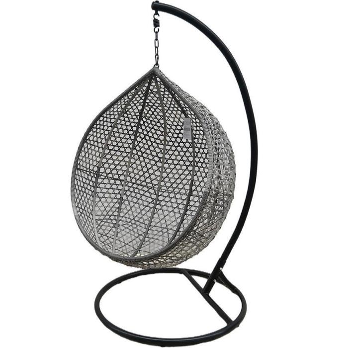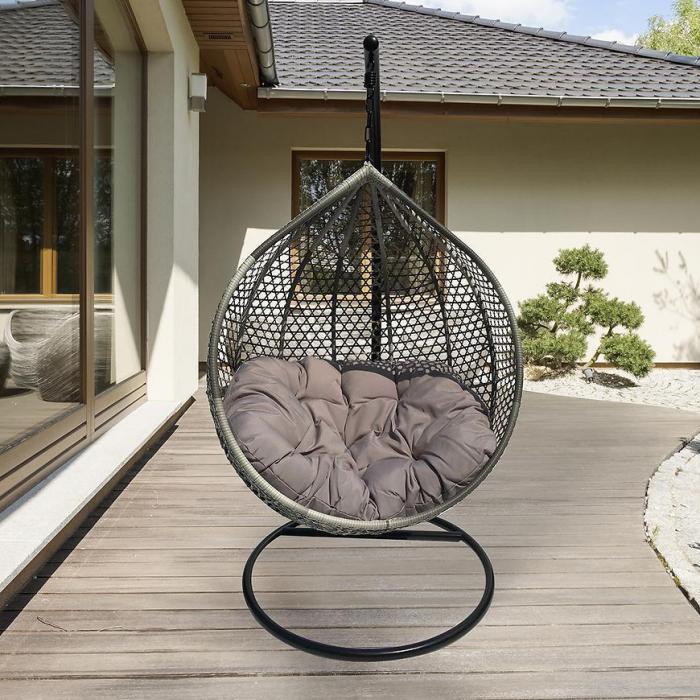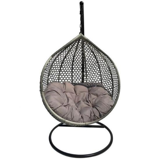 Fotel wiszący Ateny szary z poduszką to idealne miejsce na popołudniową kawę czy relaksujący wieczór z książką. Fotel jest bardzo wytrzymały, stelaż wykonany jest z metalu, natomiast siedzisko z technorattanu. Max. obciążenie 120kg. Montaż nie jest skomplikowany i nie zabiera dużo czasu. Wymiary kosza: 106x74x123 cm
