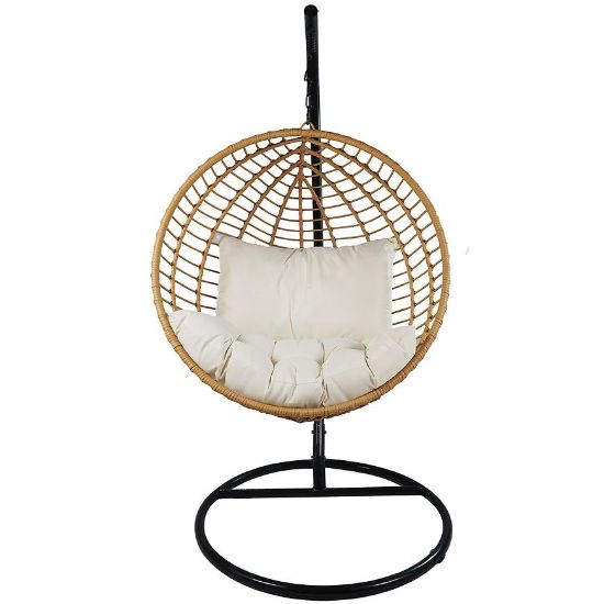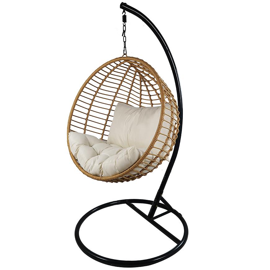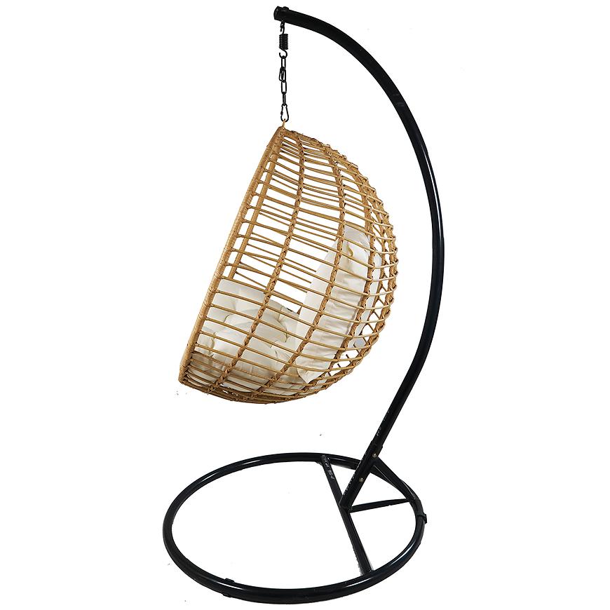 Fotel wiszący Devana w naturalnym kolorze to elegancka propozycja dla osób poszukujących komfortowego miejsca do relaksu zarówno w domu, jak i w ogrodzie. Stylowy kosz w ciepłym, beżowym odcieniu o wymiarach 105x68x105 cm zapewnia nie tylko wygodę, ale i wyjątkowy efekt wizualny, który wzbogaci każdą przestrzeń. Wykończenie kosza w naturalnej tonacji pięknie komponuje się z solidną, czarną ramą, nadając całości nowoczesny charakter. Jego konstrukcja została wykonana z myślą o trwałości – model Devana wytrzymuje obciążenie do 150 kg, co zapewnia stabilność i bezpieczeństwo podczas użytkowania.