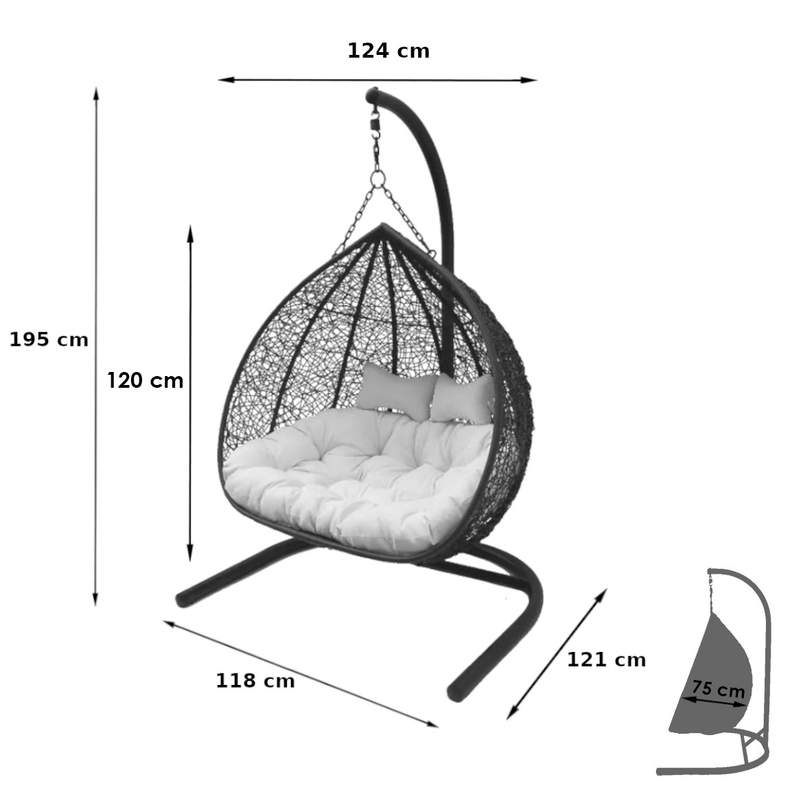 Ten dwuosobowy fotel wiszący to nie tylko funkcjonalny mebel, ale także element dekoracyjny, który doda uroku i klasy każdemu miejscu, w którym się znajdzie. Ciesz się chwilami relaksu, czytając ulubioną książkę, popijając kawę czy po prostu odpoczywając na świeżym powietrzu. Fotel Dubaj stanie się Twoim ulubionym miejscem do spędzania wolnego czasu, zapewniając Ci komfort i luksus na co dzień.