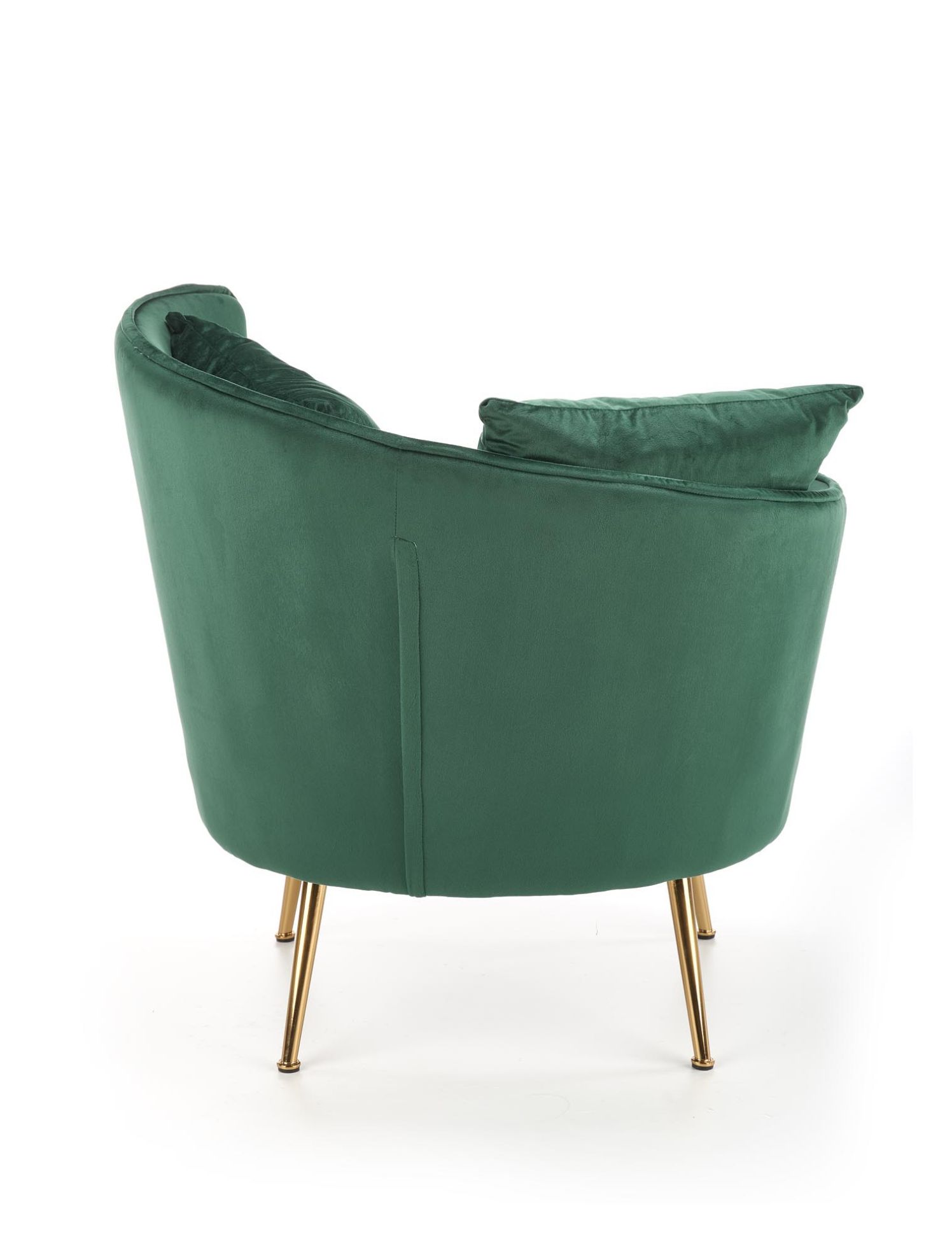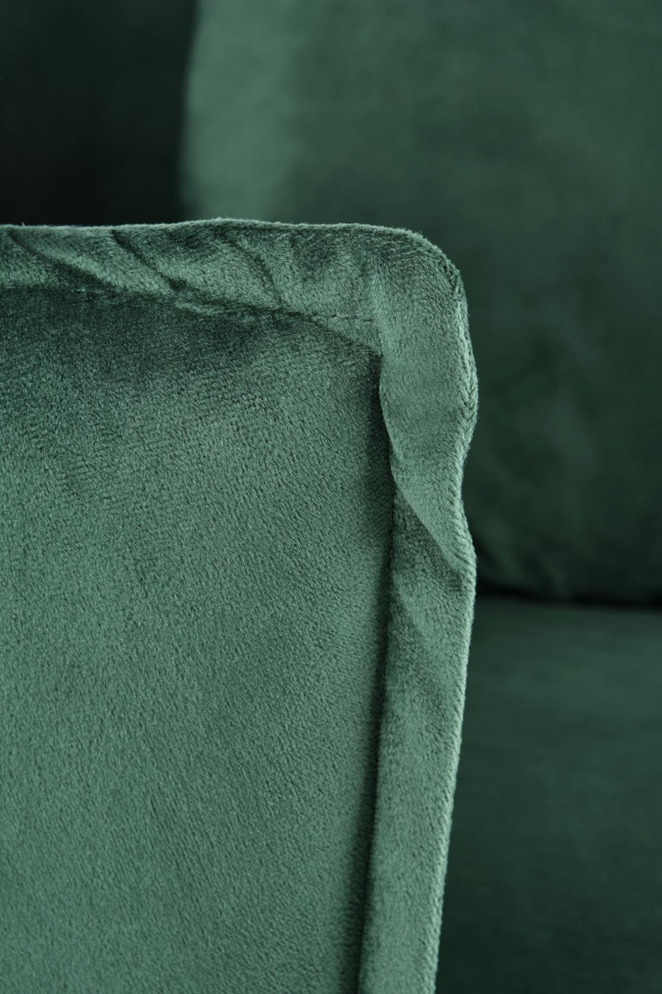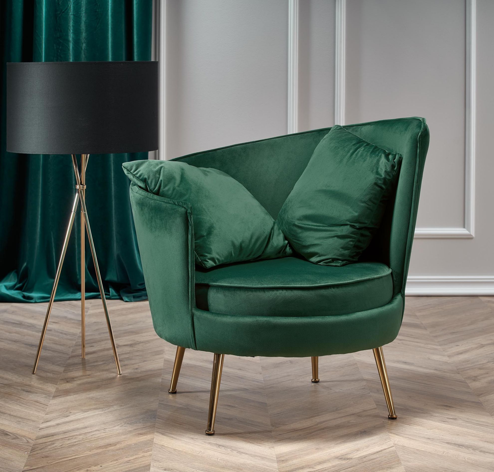 Fotel Angel obity jest luksusową tkaniną velvet w głębokim, ciemnozielonym kolorze, który nadaje wnętrzu elegancji i stylu. Velvet jest miękki i przyjemny w dotyku, co dodatkowo podnosi komfort użytkowania. Stelaż fotela wykonany jest z chromowanej stali, co zapewnia nie tylko trwałość i stabilność, ale także nowoczesny wygląd, doskonale komponujący się z miękką tkaniną obicia.