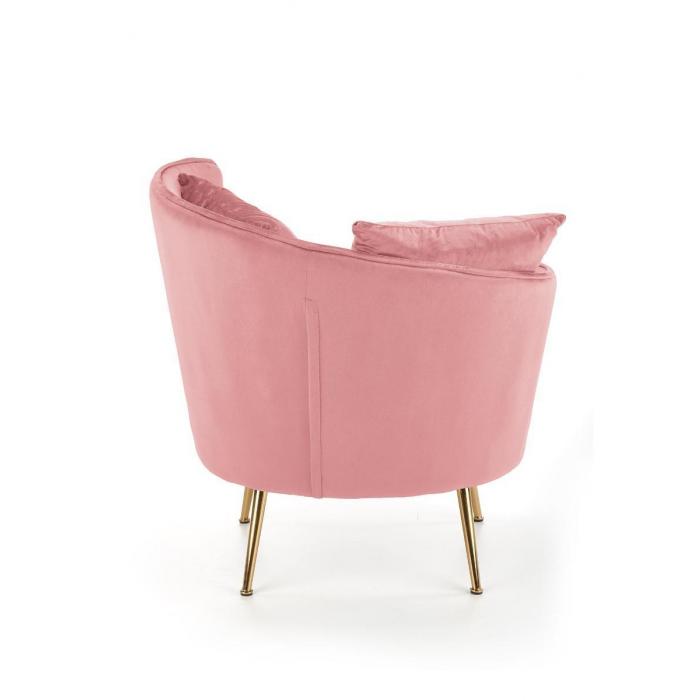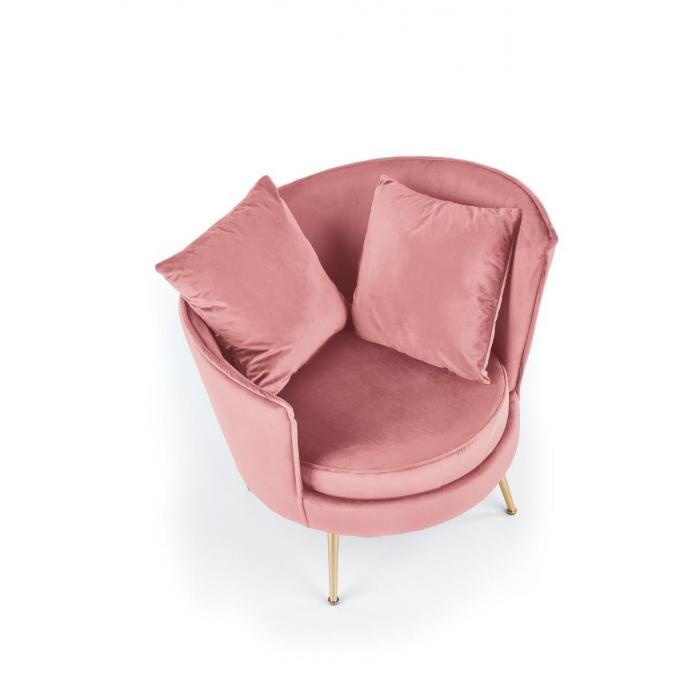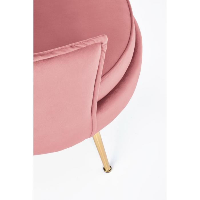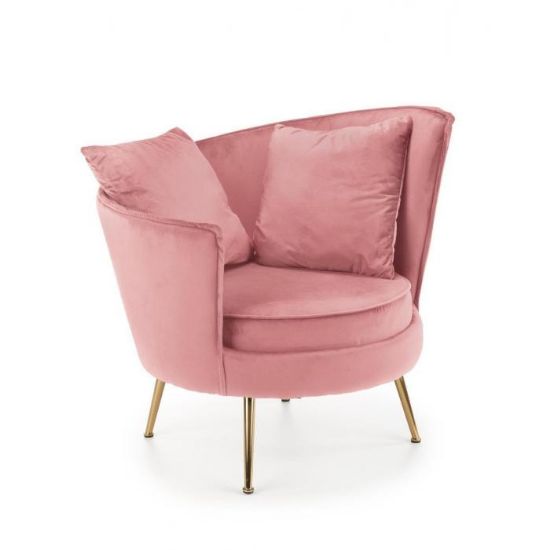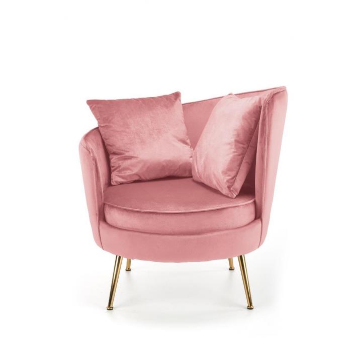 Fotel Angel obity jest luksusową tkaniną velvet w różowy kolorze, który nadaje wnętrzu elegancji i stylu. Velvet jest miękki i przyjemny w dotyku, co dodatkowo podnosi komfort użytkowania. Stelaż fotela wykonany jest z chromowanej stali, co zapewnia nie tylko trwałość i stabilność, ale także nowoczesny wygląd, doskonale komponujący się z miękką tkaniną obicia.