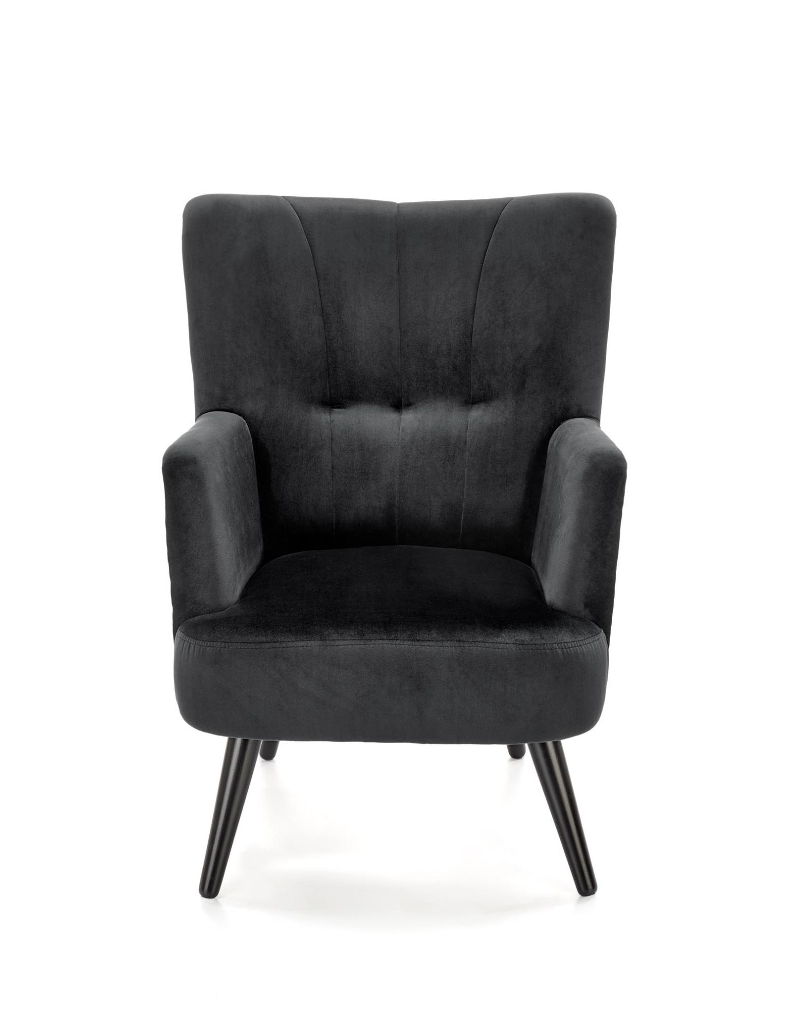 Nogi fotela zostały wykonane z trwałego drewna litego w kolorze czarnym. Kolorystyka nadaje meblowi nowoczesny charakter i elegancję. Drewno lite zapewnia stabilność i trwałość fotela, dzięki czemu będzie on służyć przez wiele lat.