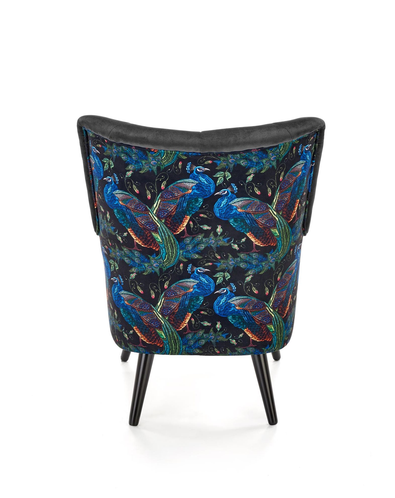Tapicerka fotela wykonana jest z miękkiej i przyjemnej w dotyku tkaniny velvet w kolorze czarnym (Bluvel #19). Ten elegancki odcień nadaje fotelowi wyrafinowanego charakteru i nadaje mu luksusowego uroku. Tkanina velvet to nie tylko modny wybór, ale także materiał, który zapewnia niezrównany komfort siedzenia.