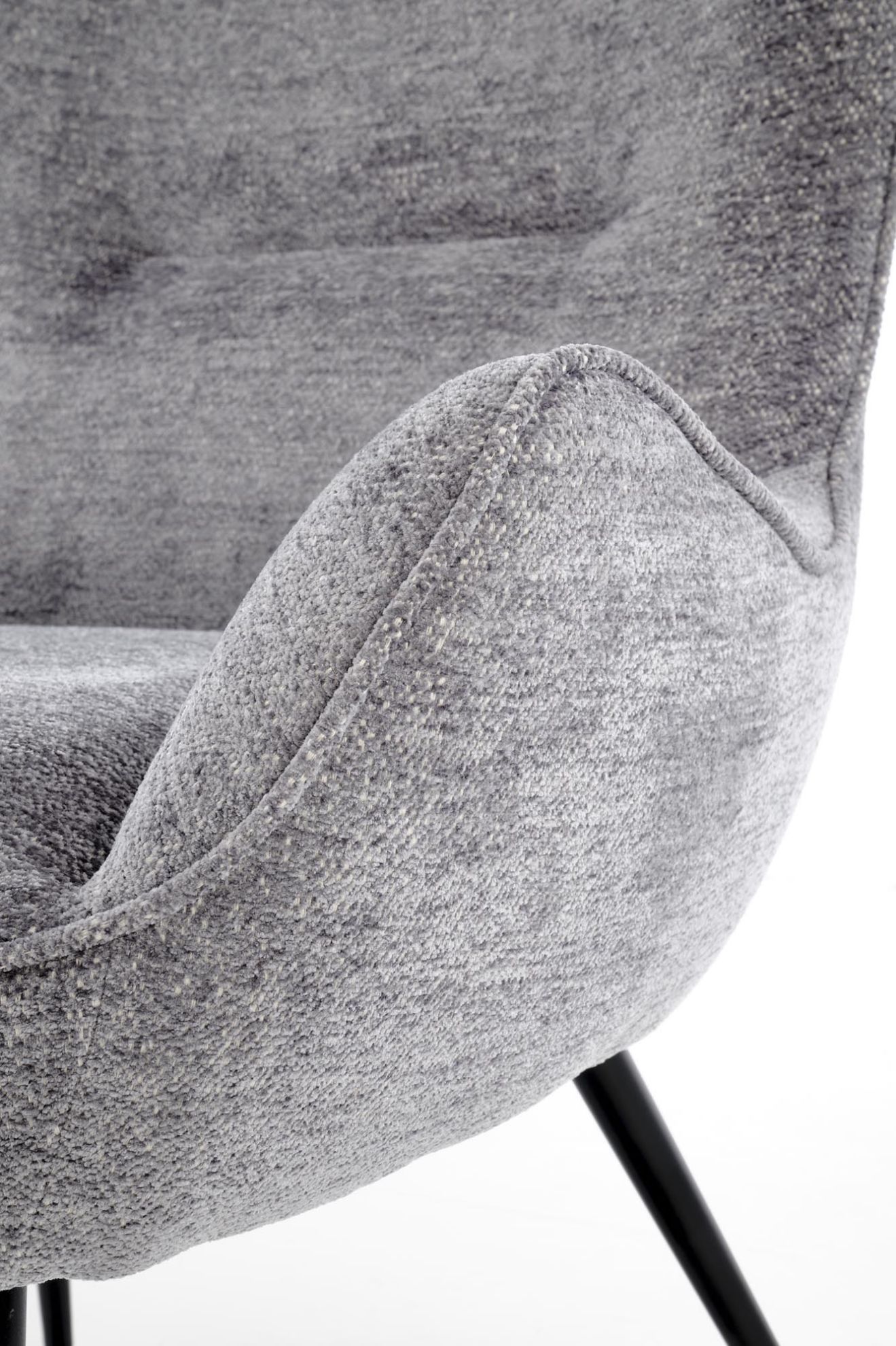 Fotel opiera się na stabilnym metalowym stelażu w kolorze czarnym, który gwarantuje wytrzymałość i bezpieczeństwo. Starannie wykończona tapicerka podkreśla nowoczesny charakter fotela, nadając mu elegancki i harmonijny wygląd.