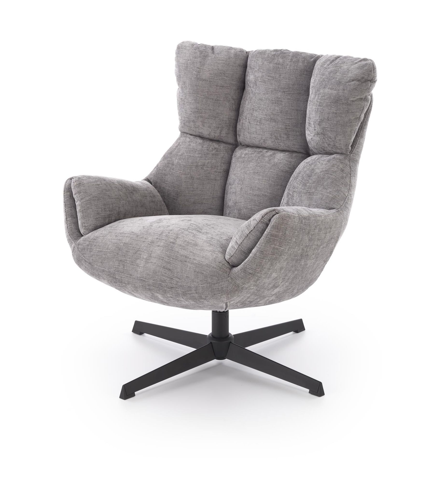 Fotel Olen w popielatym kolorze łączy nowoczesną formę z wygodą użytkowania. Tapicerka z tkaniny ODIN jest miękka w dotyku, a ergonomiczne siedzisko zapewnia komfortowe podparcie pleców podczas odpoczynku.