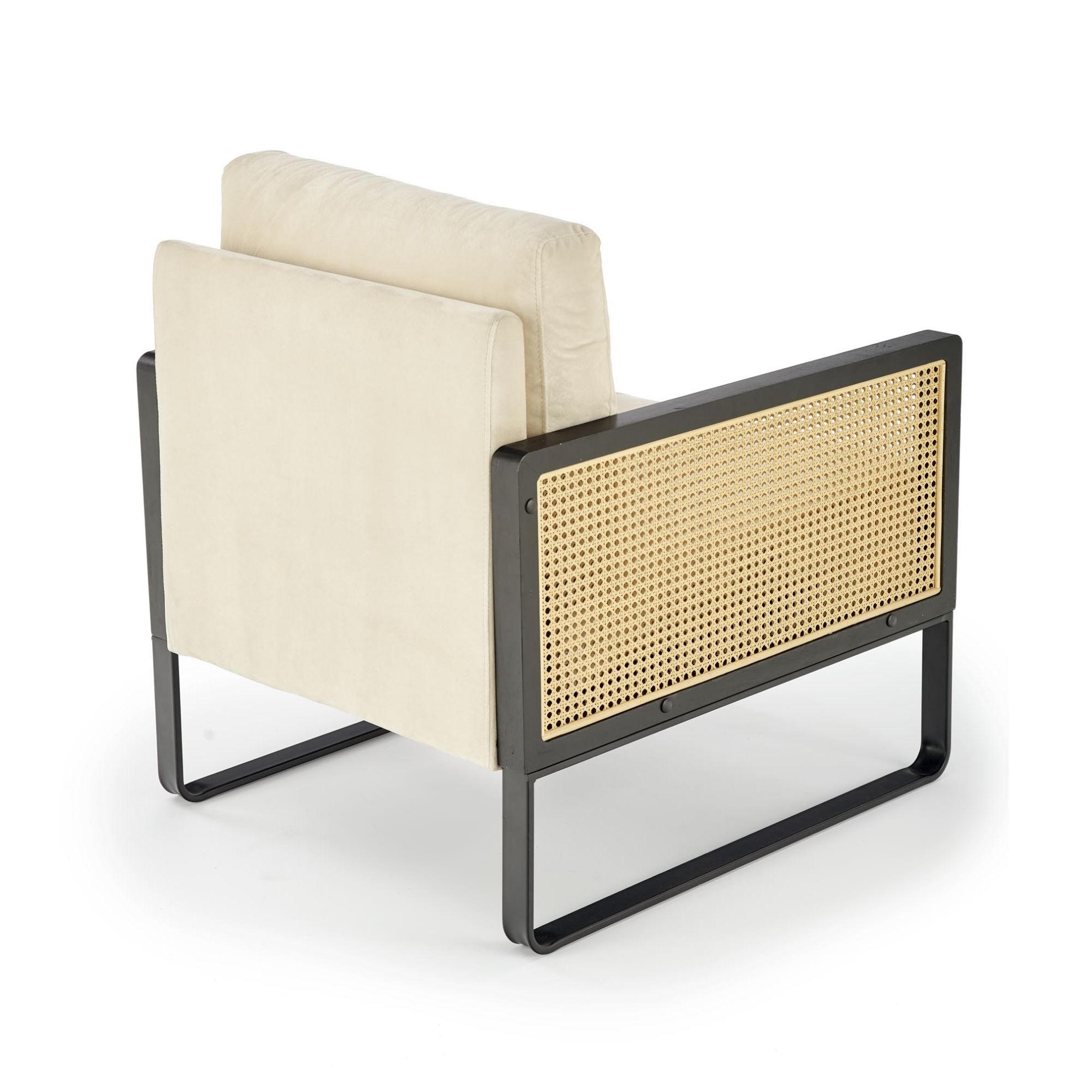 Tapicerka fotela wykonana jest z miękkiej i przyjemnej w dotyku tkaniny velvet w kolorze jasny beż. Ten odważny kolor nadaje fotelowi nowoczesnej elegancji i nadaje mu luksusowego charakteru. Tkanina velvet to nie tylko modny wybór, ale także materiał, który zapewnia niezrównany komfort siedzenia.