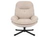 Komfort użytkowania zapewnia miękkie siedzisko z wypełnieniem z pianki i sprężyn falistych, co gwarantuje odpowiednie podparcie i trwałość. Metalowy stelaż w kolorze czarnym podkreśla nowoczesny styl fotela i zapewnia stabilność. Tapicerka wykonana jest w 100% z poliestru, a maksymalne obciążenie wynosi 150 kg.