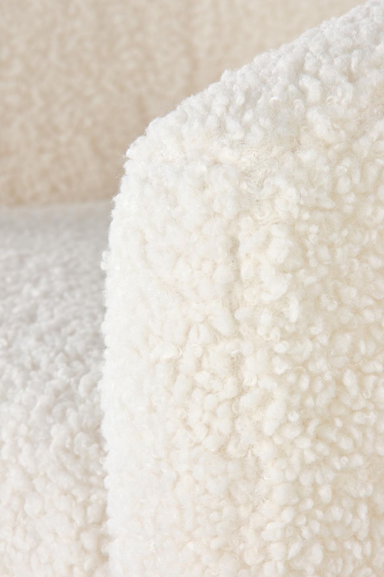 Tapicerka fotela wykonana jest z miękkiej i przyjemnej w dotyku tkaniny bouclé w kolorze kremowym. Kolor nadaje fotelowi nowoczesnej elegancji i nadaje mu luksusowego charakteru. Tkanina bouclé to nie tylko modny wybór, ale także materiał, który zapewnia niezrównany komfort siedzenia.