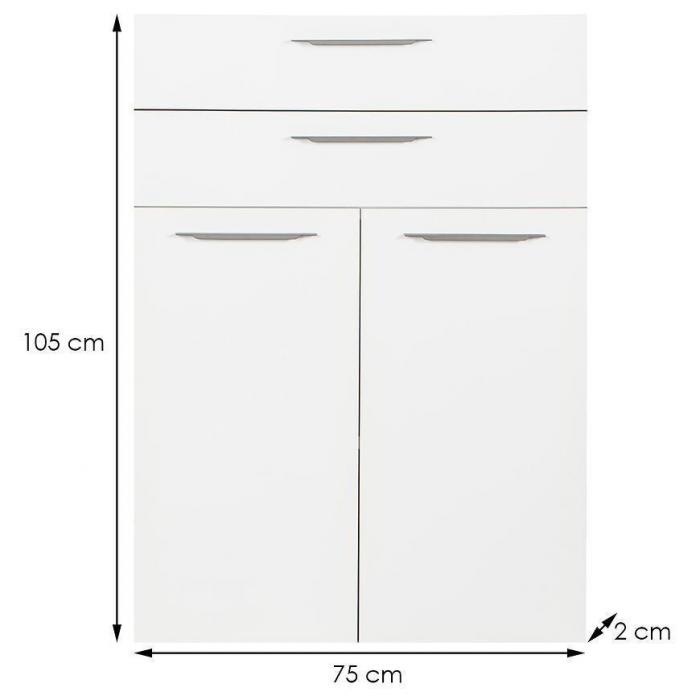 Fronty zostały wykonane z płyty wiórowej laminowanej w kolorze białym połysk. Będzie pasował do mebli z tej samej kolekcji.