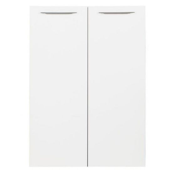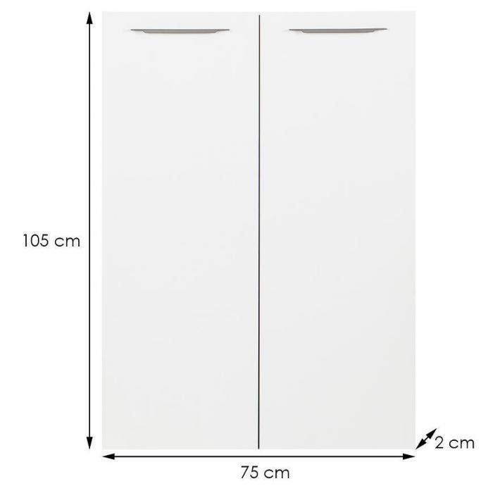 Fronty zostały wykonane z płyty wiórowej laminowanej w kolorze białym połysk. Będzie pasował do mebli z tej samej kolekcji.