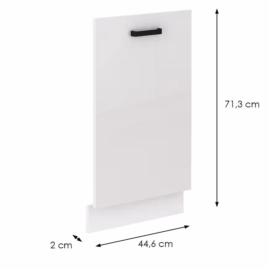 Konstrukcja frontów oparta jest na solidnej płycie wiórowej laminowanej, co gwarantuje trwałość i odporność na warunki kuchenne. Połyskujące wykończenie dodaje frontowi elegancji, jednocześnie sprawiając, że jest łatwy do utrzymania w czystości.