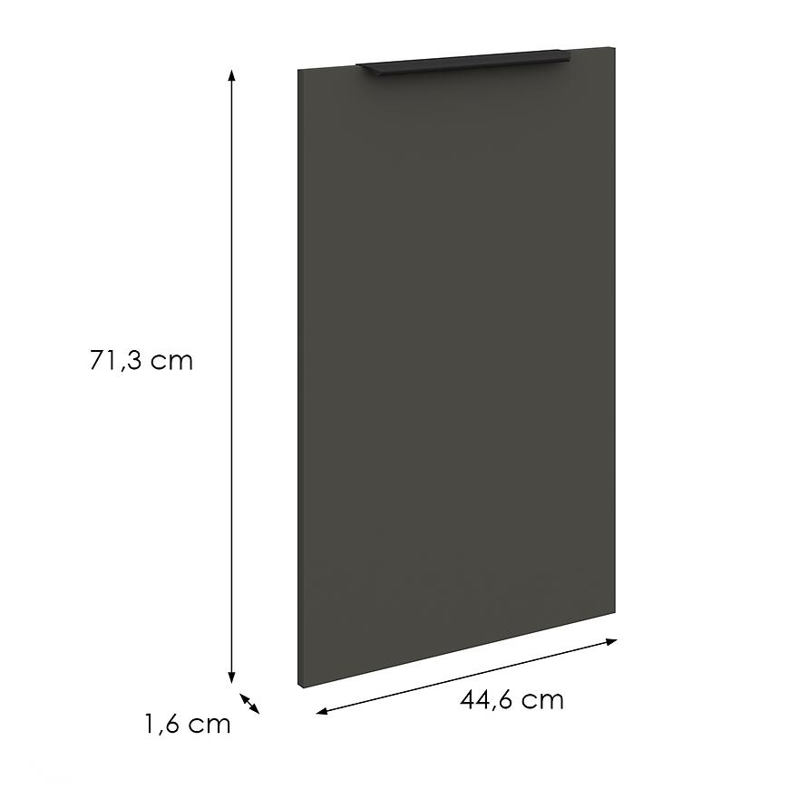 Front wykonano z laminowanej płyty wiórowej, co gwarantuje solidną i stabilną konstrukcję o podwyższonej odporności na codzienne użytkowanie. Technologia Anti Fingerprint sprawia, że fronty do zmywarki nie wymagają częstego przecierania, dzięki czemu kuchnia zachowuje schludny wygląd przez cały dzień. Produkt należy do kolekcji ARIA GRAPHITE, znanej z połączenia minimalistycznej estetyki i nowoczesnego designu.