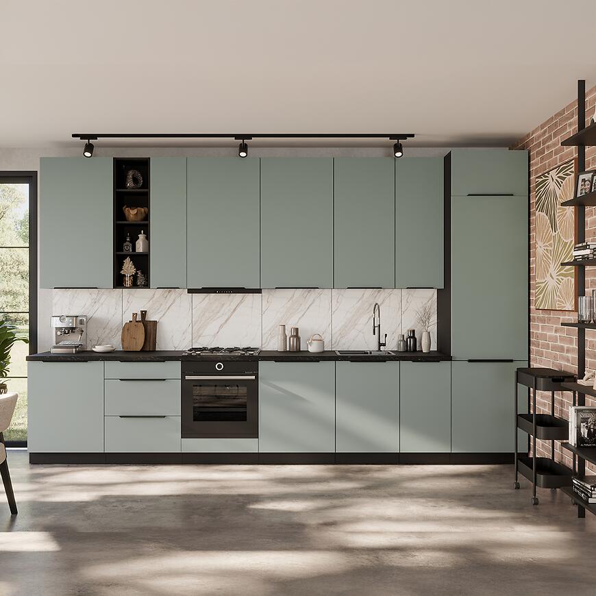 Front wyróżnia się stylistyką inspirowaną naturalnymi barwami, odpornością na codzienne użytkowanie oraz powłoką Anti Fingerprint. To świetny wybór dla osób, które chcą stworzyć kuchnię o spójnej i eleganckiej estetyce, z wykorzystaniem nowoczesnych frontów matowych w kolorze zielonym. Dzięki swojej konstrukcji i zastosowanym materiałom front doskonale sprawdzi się zarówno w małych, jak i dużych zabudowach kuchennych, zapewniając trwałość oraz estetyczny wygląd na lata.