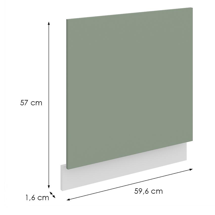 Front wykonano z płyty wiórowej laminowanej, co zapewnia dobrą stabilność konstrukcji i trwałość podczas intensywnej eksploatacji. To model dedykowany jako front do zmywarki, dzięki czemu pozwala na estetyczne ukrycie sprzętu AGD i zachowanie jednolitej linii zabudowy. Dodatkowym atutem jest cokół w kolorze korpusu – biały, który wzmacnia wizualną spójność kuchni i świetnie kontrastuje z akcentem aquamarine.