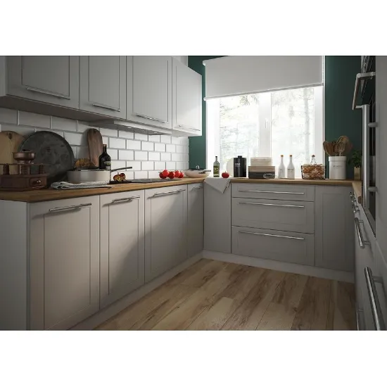 Kolekcja Quantum zachwyca dekoracją w odcieniach dust grey/mint. To połączenie klasycznego uroku i nowoczesnej świeżości, które doskonale wpisuje się w różnorodne aranżacje kuchni. Zarówno fronty, jak i korpusy mebli zostały wykończone w matowej powłoce, co nadaje im wyjątkowego charakteru. Matowe wykończenie dodaje elegancji i subtelnego blasku, jednocześnie eliminując odblaski światła.